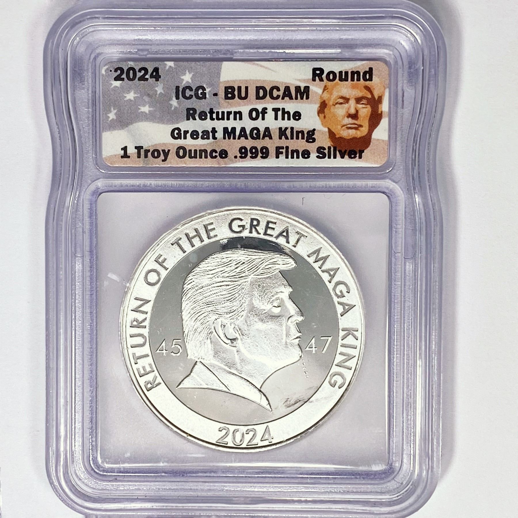 2024 1oz Silver MAGA King Trump ICG BU DCAM