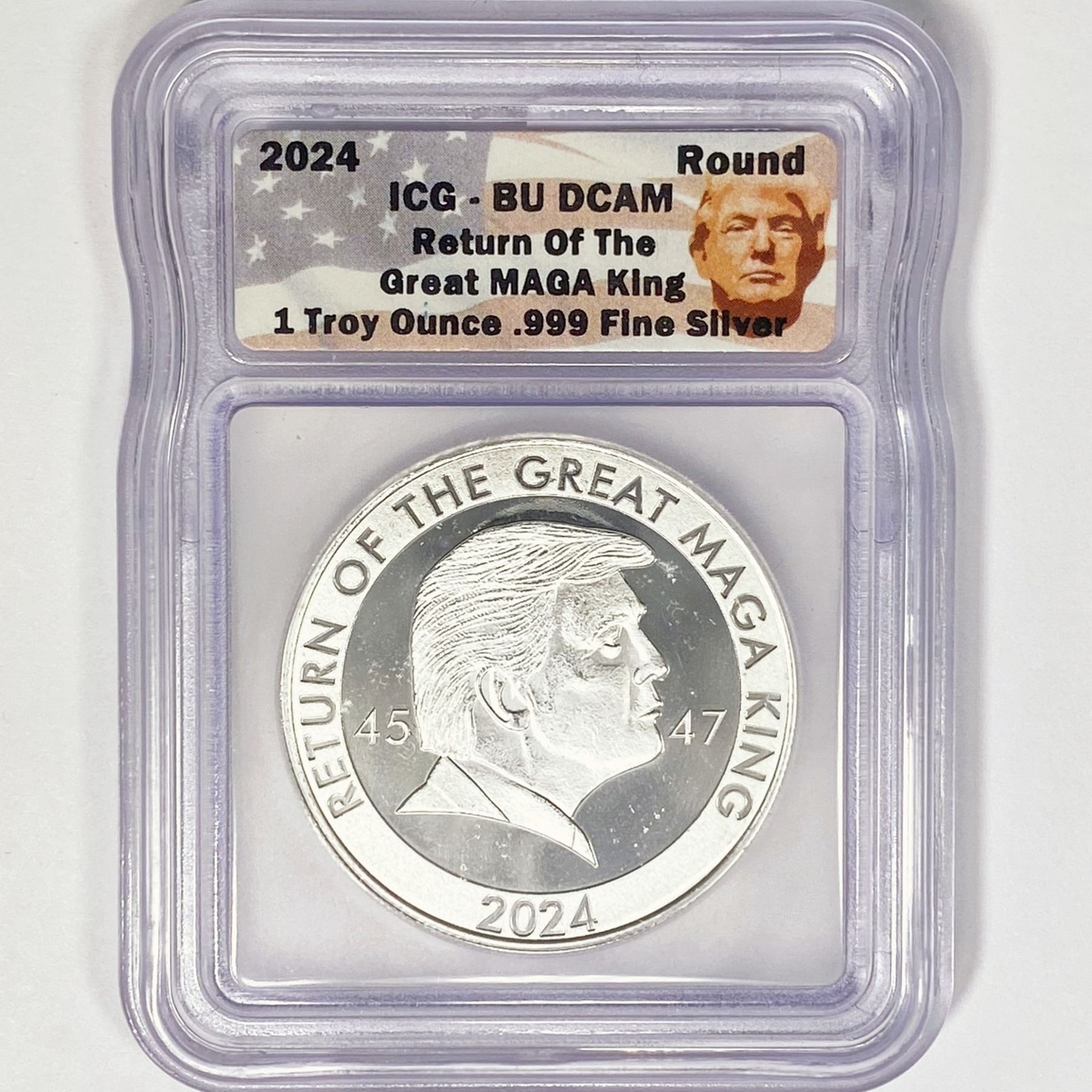 2024 1oz Silver MAGA King Trump ICG BU DCAM