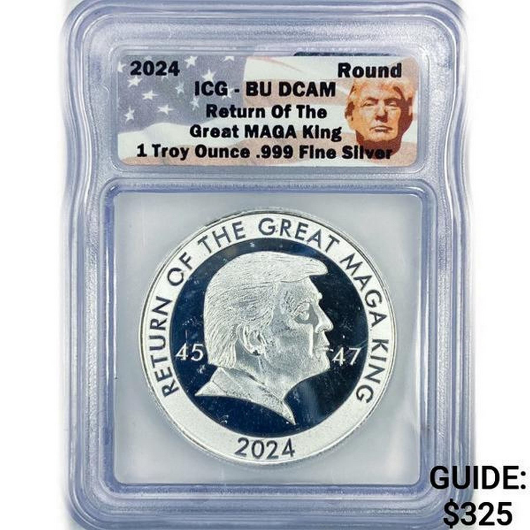 2024 1oz Silver MAGA King Trump ICG BU DCAM