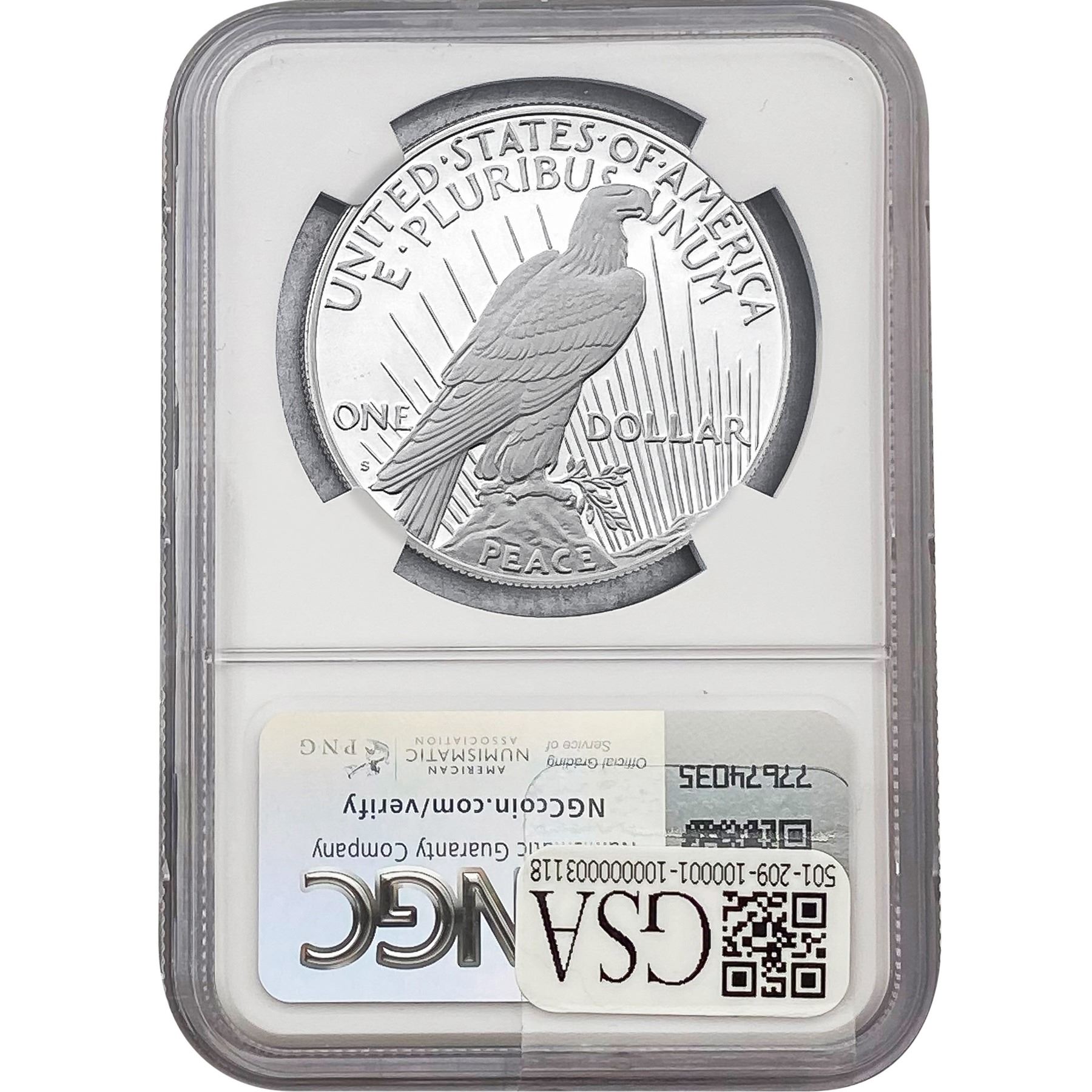 e. Coins sold referencing a third-party grading service are sold “AS IS” without any express or implied warranty, except for a guarantee by GSA that they are genuine. Removal or alteration of the holder, voids all of Bidder’s claims concerning that Product. Certain warranties may be available from the grading services and Bidders are referred to them for further details: Numismatic Guaranty Corporation (NGC), PO Box 4776, Sarasota, FL 34230, www.ngccoin.com/services/writtenguarantee.asp; Professional Coin Grading Services (PCGS), PO Box 9458, Newport Beach, CA 92658, www.pcgs.com/guarantee.html; ANACS, 6555 S. Kenton St., Ste. 303, Englewood, CO 80111; and Independent Coin Grading Co. (ICG), 7901 East Bellview, Ave., Suite 50, Englewood, CO 80111.