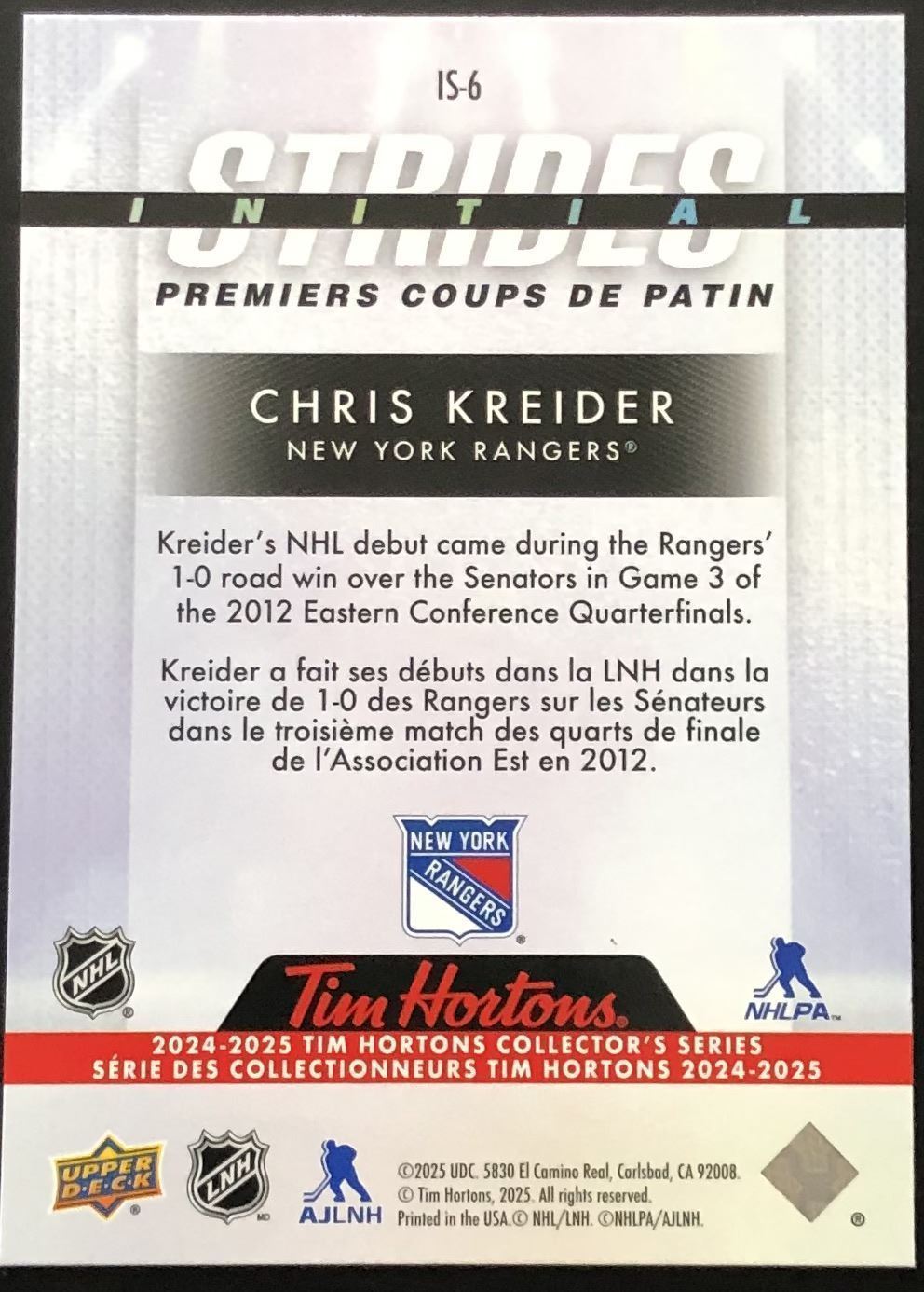 Tim Hortons card #IS6 NHL, hockey, UD, regional