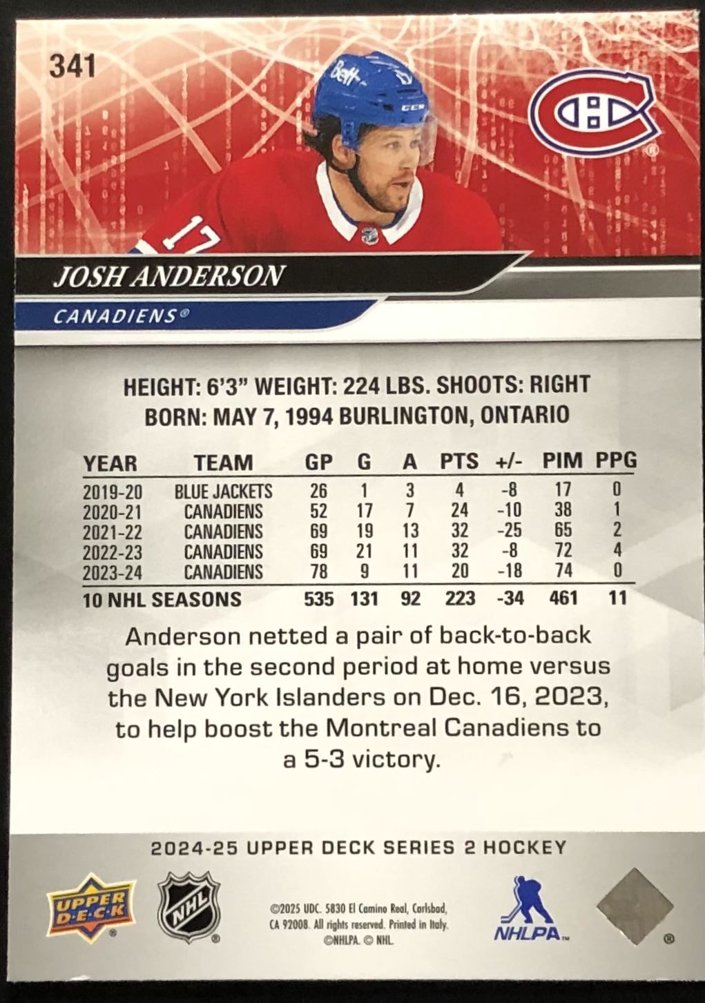 Card #341 UD, NHL, hockey