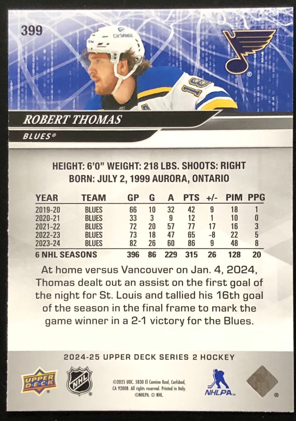 Card #399 UD, NHL, hockey