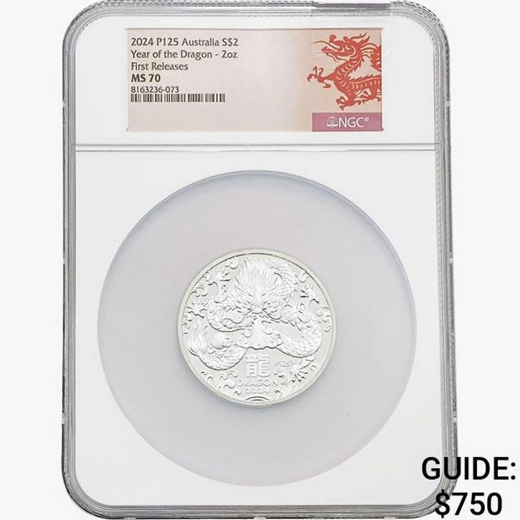 2024 2oz Silver P125 Australia $2-Dragon NGC MS70