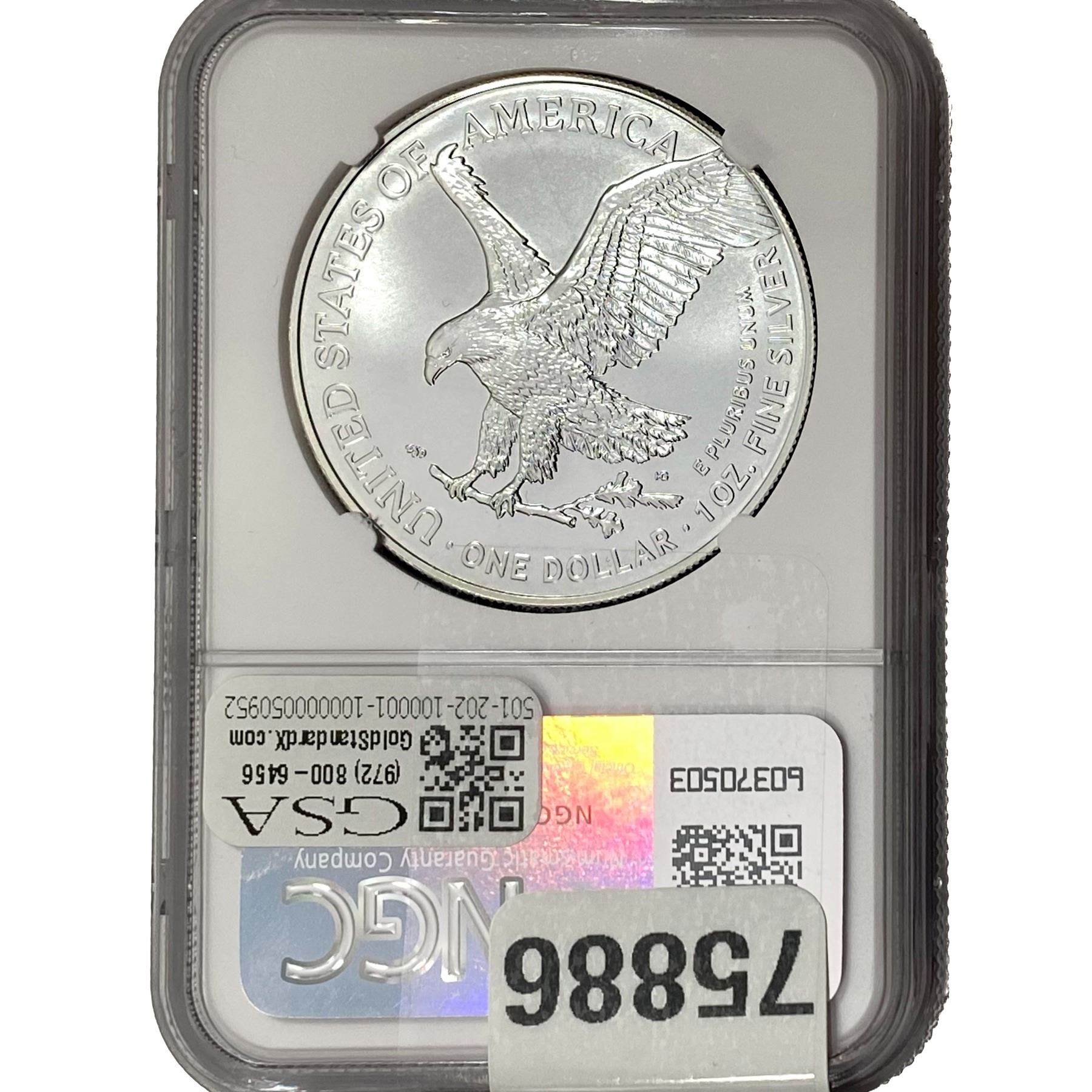 e. Coins sold referencing a third-party grading service are sold “AS IS” without any express or implied warranty, except for a guarantee by GSA that they are genuine. Removal or alteration of the holder, voids all of Bidder’s claims concerning that Product. Certain warranties may be available from the grading services and Bidders are referred to them for further details: Numismatic Guaranty Corporation (NGC), PO Box 4776, Sarasota, FL 34230, www.ngccoin.com/services/writtenguarantee.asp; Professional Coin Grading Services (PCGS), PO Box 9458, Newport Beach, CA 92658, www.pcgs.com/guarantee.html; ANACS, 6555 S. Kenton St., Ste. 303, Englewood, CO 80111; and Independent Coin Grading Co. (ICG), 7901 East Bellview, Ave., Suite 50, Englewood, CO 80111.