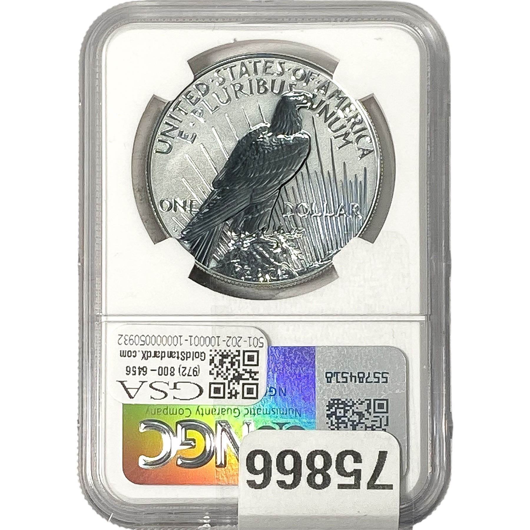 e. Coins sold referencing a third-party grading service are sold “AS IS” without any express or implied warranty, except for a guarantee by GSA that they are genuine. Removal or alteration of the holder, voids all of Bidder’s claims concerning that Product. Certain warranties may be available from the grading services and Bidders are referred to them for further details: Numismatic Guaranty Corporation (NGC), PO Box 4776, Sarasota, FL 34230, www.ngccoin.com/services/writtenguarantee.asp; Professional Coin Grading Services (PCGS), PO Box 9458, Newport Beach, CA 92658, www.pcgs.com/guarantee.html; ANACS, 6555 S. Kenton St., Ste. 303, Englewood, CO 80111; and Independent Coin Grading Co. (ICG), 7901 East Bellview, Ave., Suite 50, Englewood, CO 80111.