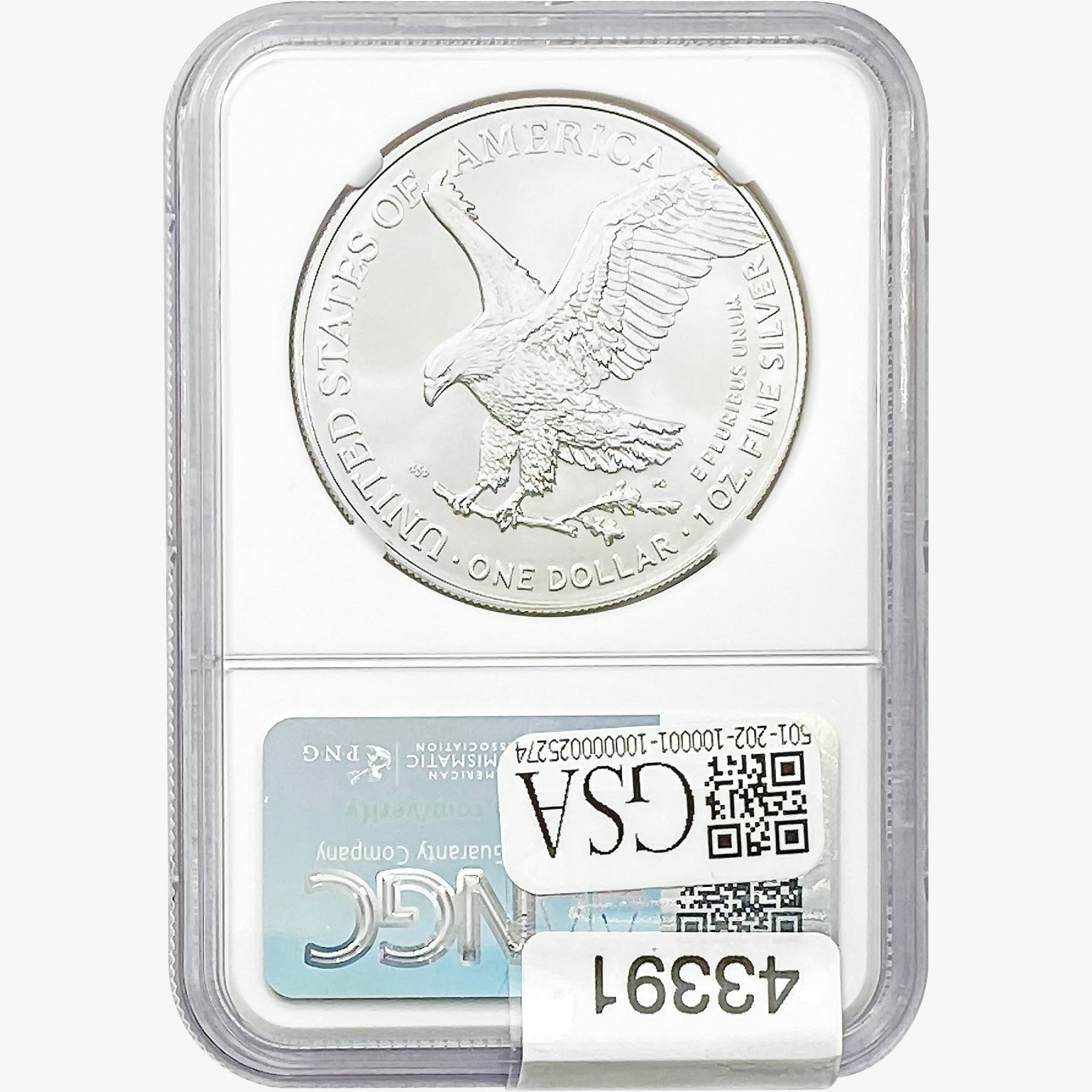 COINS AND CURRENCY LISTED IN GSA’S CATALOG AS GRADED AND ENCAPSULATED BY PCGS, NGC, ANACS, ICG, PCGS CURRENCY, PMG, PCGS BANKNOTE GRADING, CMC OR ANY OTHER THIRD-PARTY GRADING SERVICE ARE LIKEWISE SOLD “AS-IS” EXCEPT AS EXPRESSLY SET FORTH HEREIN. ALL THIRD-PARTY GRADING SERVICE GUARANTEES, INCLUDING AUTHENTICITY, ARE THE SOLE RESPONSIBILITY OF THE THIRD-PARTY GRADING SERVICE AND NOT WARRANTIES OR GUARANTEES OF GSA. BIDDERS SHOULD CONTACT THESE THIRD-PARTY GRADING SERVICES DIRECTLY WITH RESPECT TO ANY CLAIMS OR QUESTIONS THEY MAY HAVE CONCERNING THEIR GUARANTEES AND WARRANTIES. BIDDERS ACKNOWLEDGE AND AGREE THAT AUCTIONEER IS NOT BOUND BY OR LIABLE FOR ANY OPINION OR CERTIFICATION BY ANY THIRD-PARTY GRADING SERVICE. REMOVAL OF A PRODUCT FROM ITS PROTECTIVE CASING OR HOLDER OR ALTERATION OF ANY COIN HOLDER WAIVES ALL RIGHTS CONCERNING THE PRODUCT CONTAINED THEREIN.