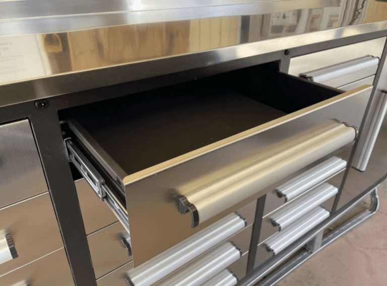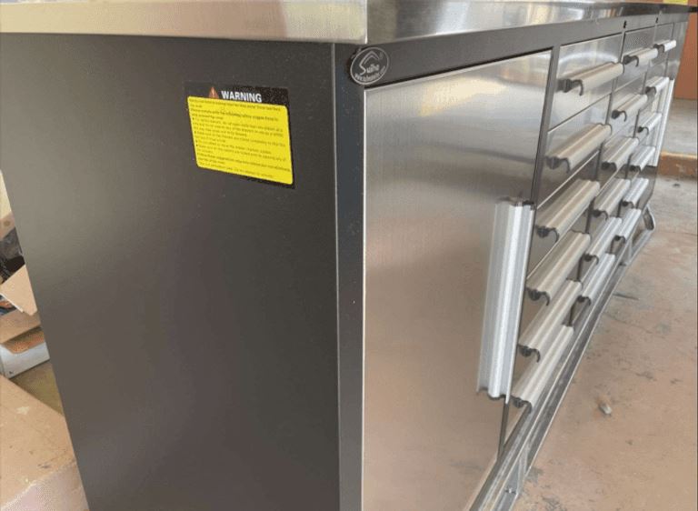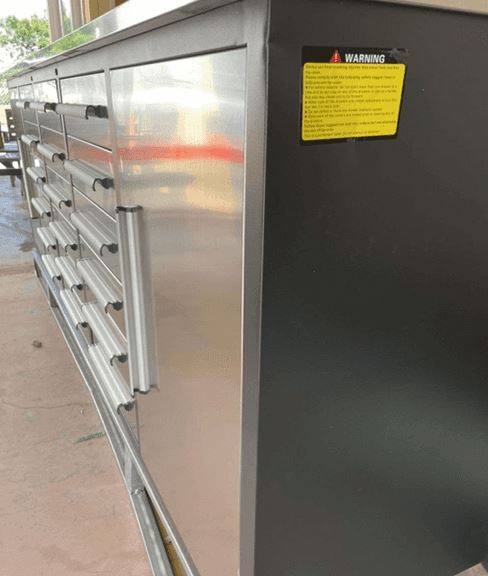Unused 2024 Steelman stainless steel 10' workbench with 18 drawers and 2 cabinets. Drawers with lock and anti-slip inners. Using new 3 rail sliding, stainless steel top. Approx. weight 230 kg. Approx. measurement 2870mm x 610mm x 1100.