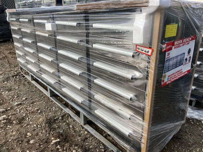 Unused 2024 Steelman stainless steel 10' workbench with 30 drawers. Drawers with lock and anti-slip inners. Using new 3 rail sliding, stainless steel top. Approx. weight 290 kg., approx. measurement 2870mm x 610mm x 1100mm