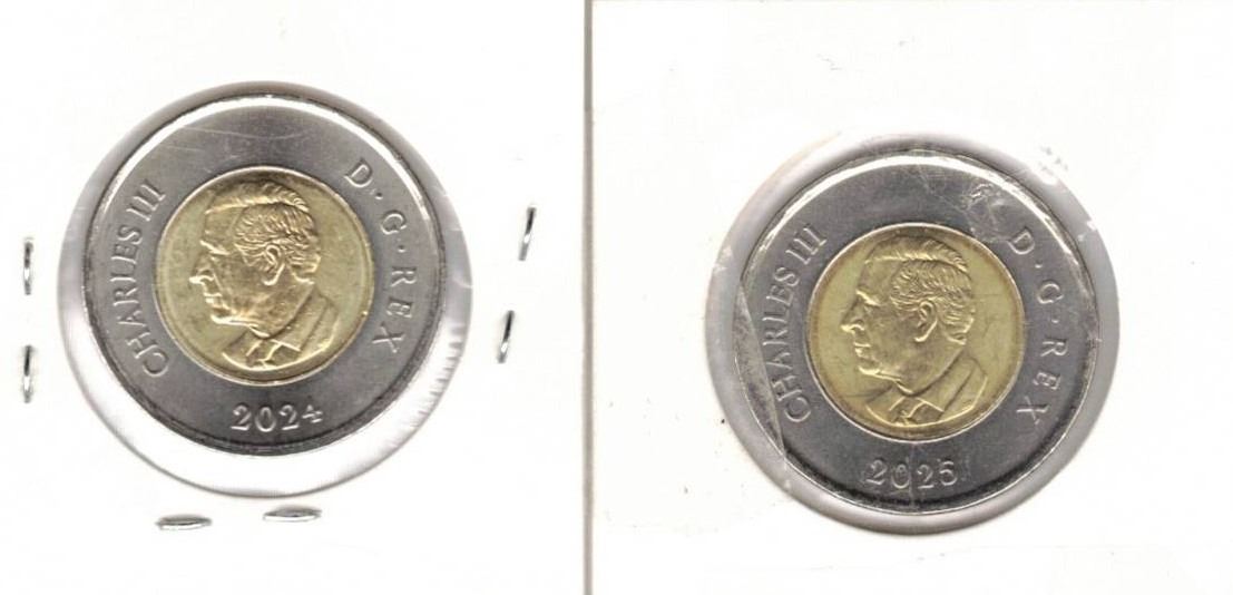 2024 ,Toonie with King Charles III , uncirculated AND 2025 Toonie