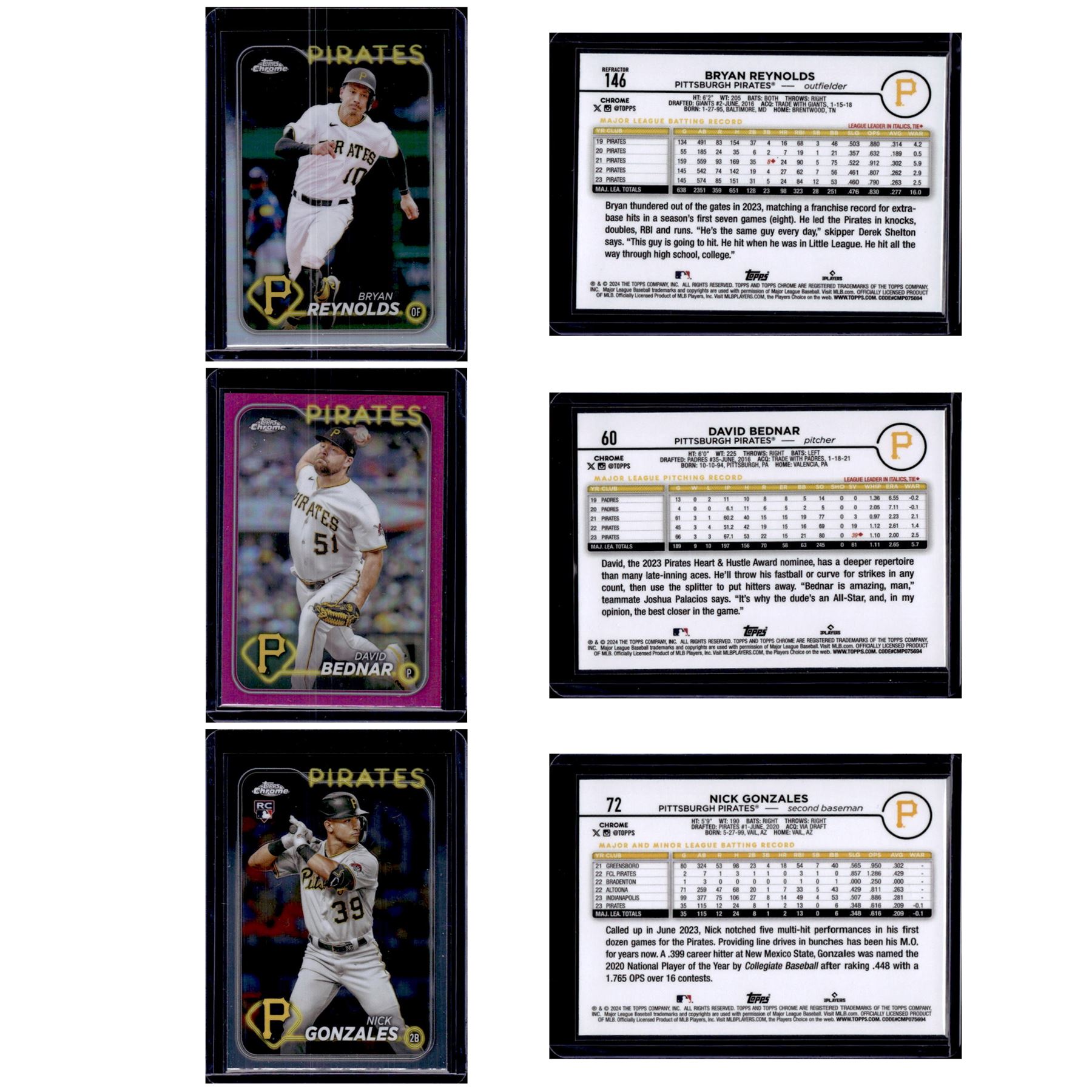 2024 Topps Chrome Pirates Lot Reynolds Refractor, Bednar Pink, Gonzales