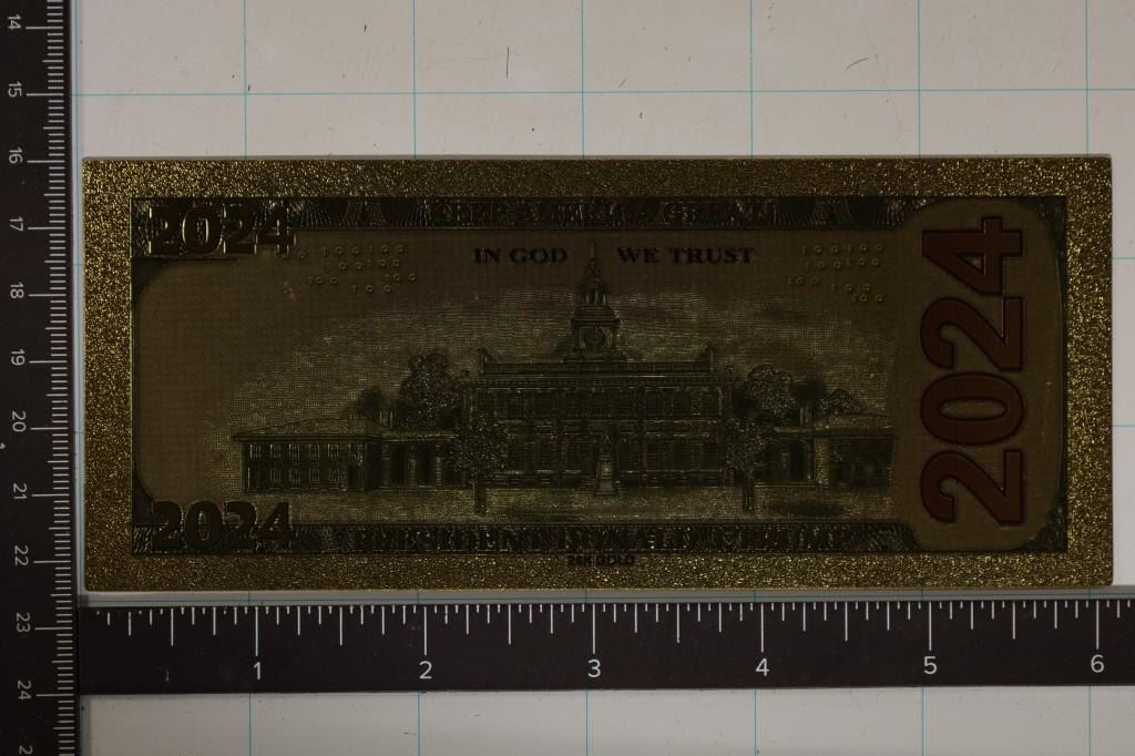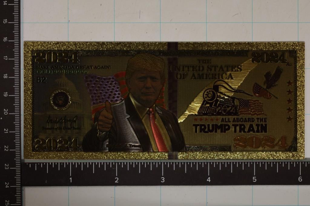 ABOARD THE TRUMP TRAIN" KEEP AMERICA GREAT 24KT GOLD, CRISP UNC