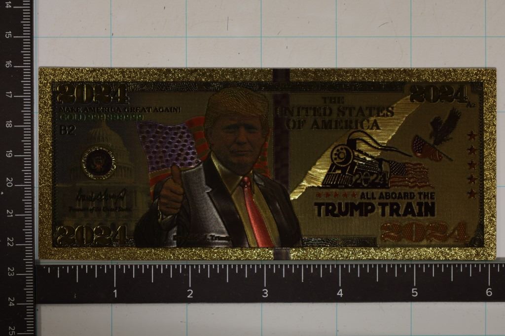 ALL ABOARD THE TRUMP TRAIN KEEP AMERICA GREAT 24KT GOLD, CRISP UNC