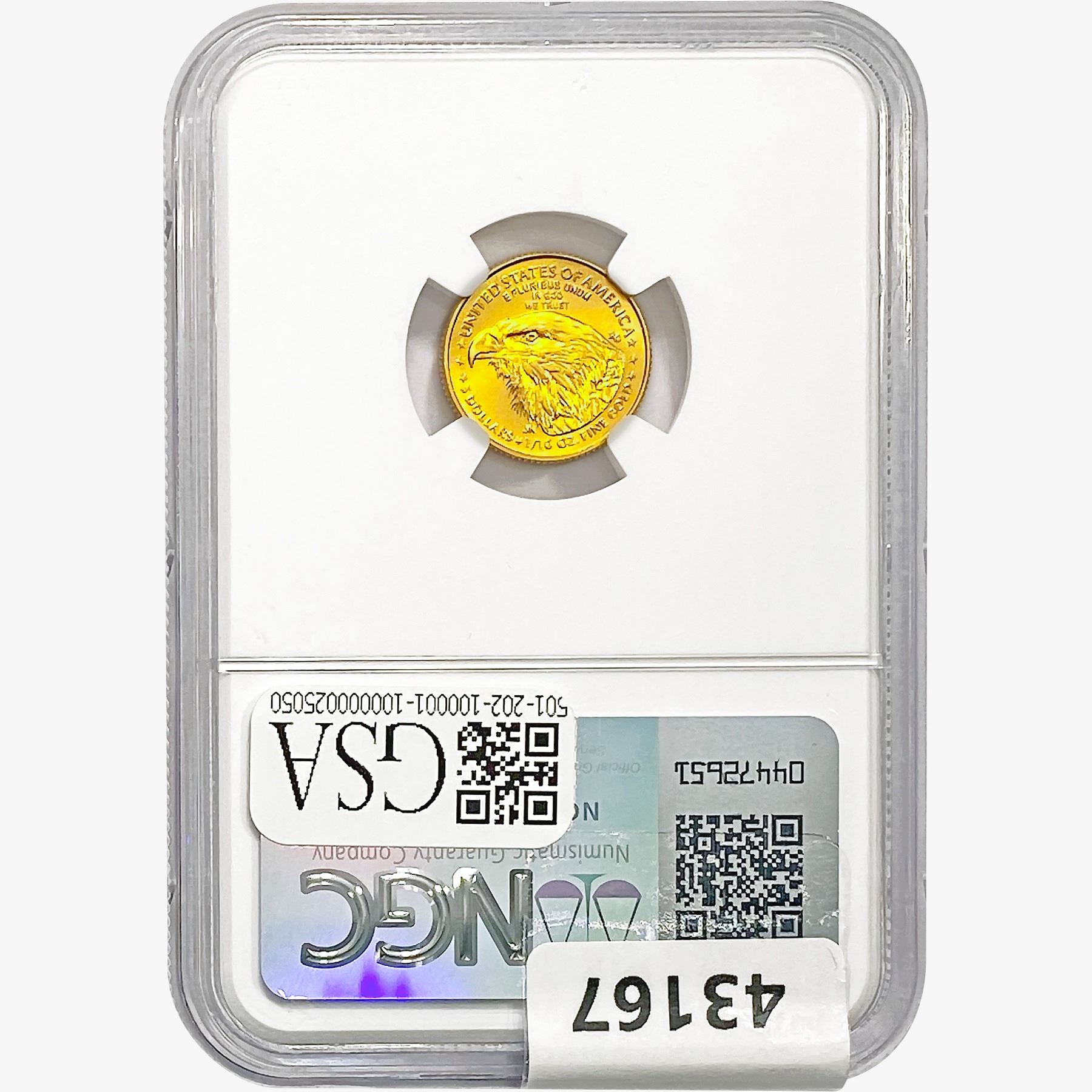 e. Coins sold referencing a third-party grading service are sold “AS IS” without any express or implied warranty, except for a guarantee by GSA that they are genuine. Removal or alteration of the holder, voids all of Bidder’s claims concerning that Product. Certain warranties may be available from the grading services and Bidders are referred to them for further details: Numismatic Guaranty Corporation (NGC), PO Box 4776, Sarasota, FL 34230, www.ngccoin.com/services/writtenguarantee.asp; Professional Coin Grading Services (PCGS), PO Box 9458, Newport Beach, CA 92658, www.pcgs.com/guarantee.html; ANACS, 6555 S. Kenton St., Ste. 303, Englewood, CO 80111; and Independent Coin Grading Co. (ICG), 7901 East Bellview, Ave., Suite 50, Englewood, CO 80111.
