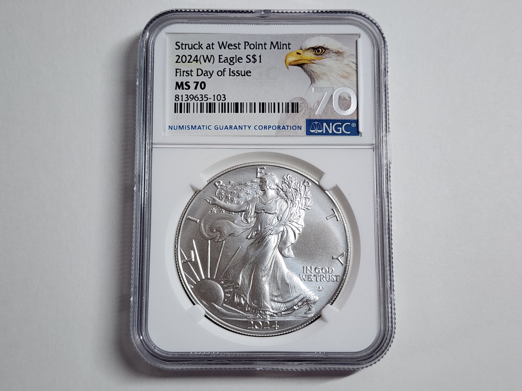 2024-W American Silver Eagle First Day of Issue Graded by NGC MS 70 West Point Mint