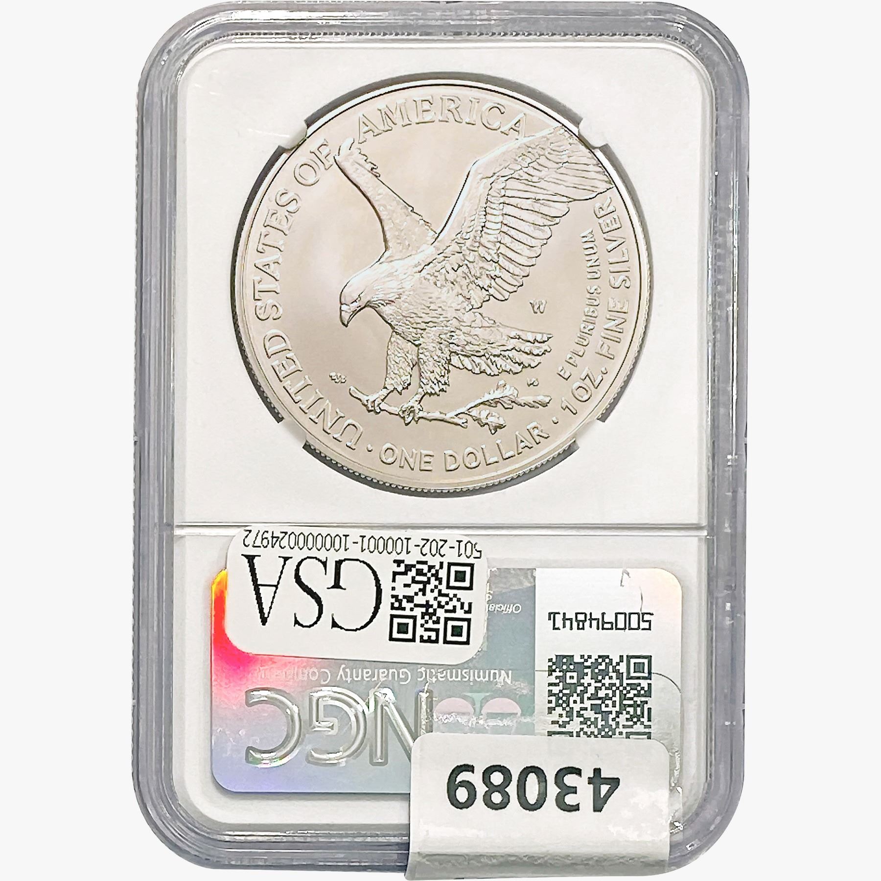 e. Coins sold referencing a third-party grading service are sold “AS IS” without any express or implied warranty, except for a guarantee by GSA that they are genuine. Removal or alteration of the holder, voids all of Bidder’s claims concerning that Product. Certain warranties may be available from the grading services and Bidders are referred to them for further details: Numismatic Guaranty Corporation (NGC), PO Box 4776, Sarasota, FL 34230, www.ngccoin.com/services/writtenguarantee.asp; Professional Coin Grading Services (PCGS), PO Box 9458, Newport Beach, CA 92658, www.pcgs.com/guarantee.html; ANACS, 6555 S. Kenton St., Ste. 303, Englewood, CO 80111; and Independent Coin Grading Co. (ICG), 7901 East Bellview, Ave., Suite 50, Englewood, CO 80111.