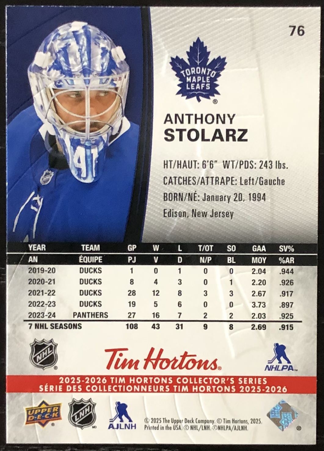 Tim Hortons card #76 NHL, hockey, regional, UD