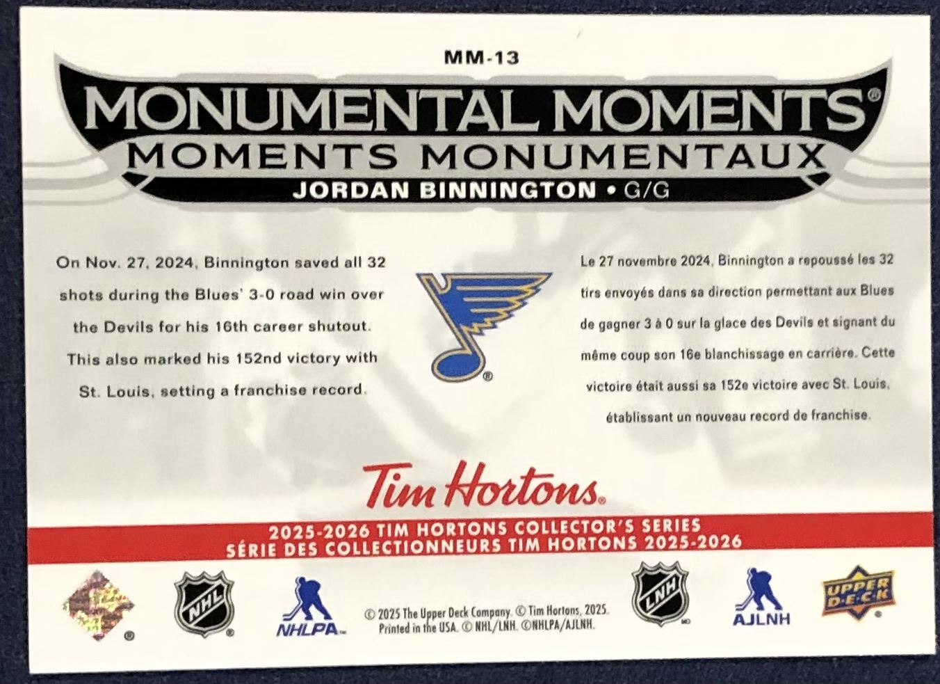 Tim Hortons card #MM-13 NHL, hockey, regional