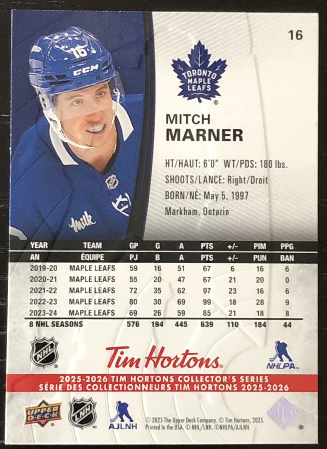 Tim Hortons card #16 NHL, hockey, UD, regional