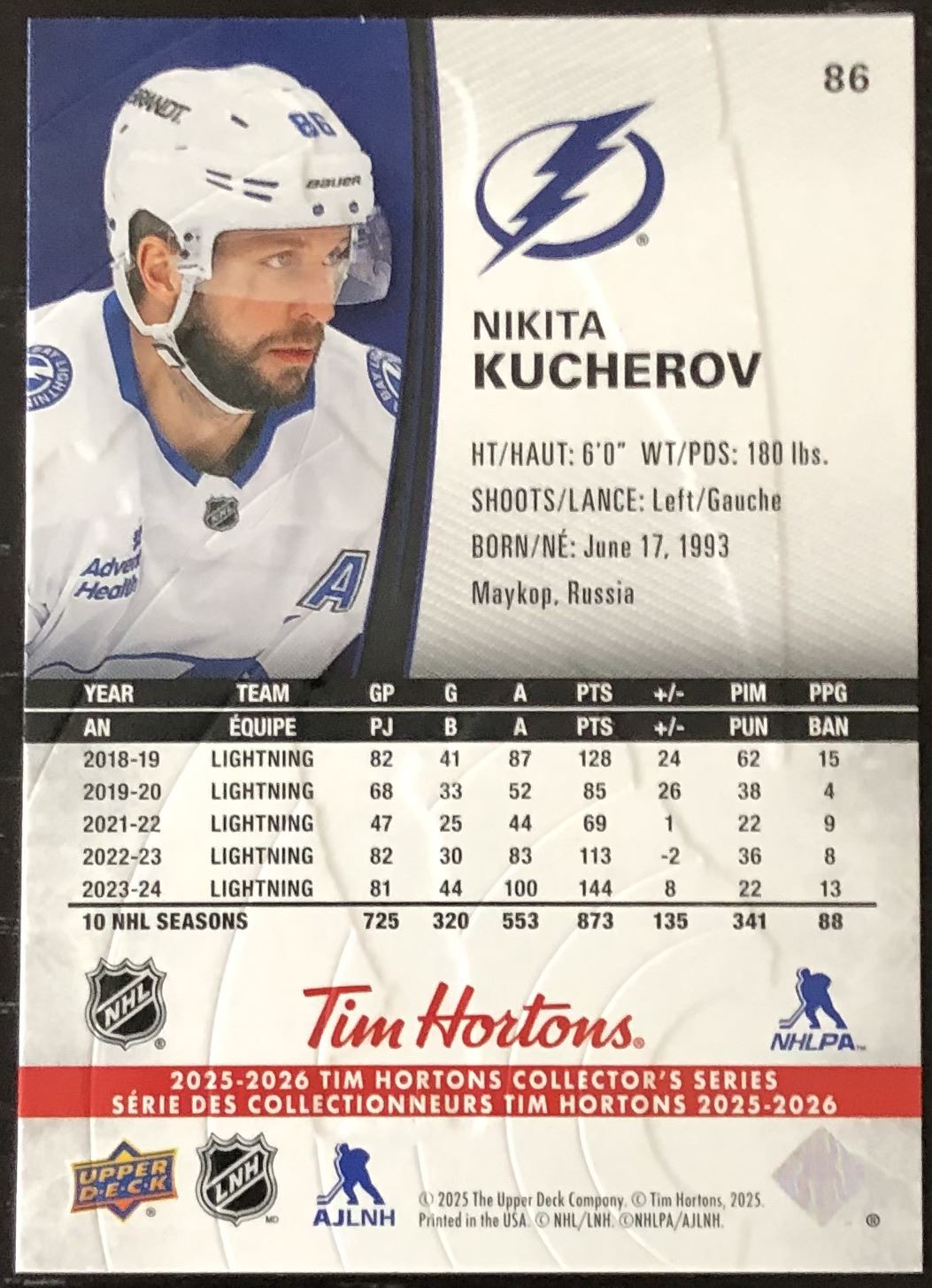 Tim Hortons card #86 NHL, hockey, UD, regional
