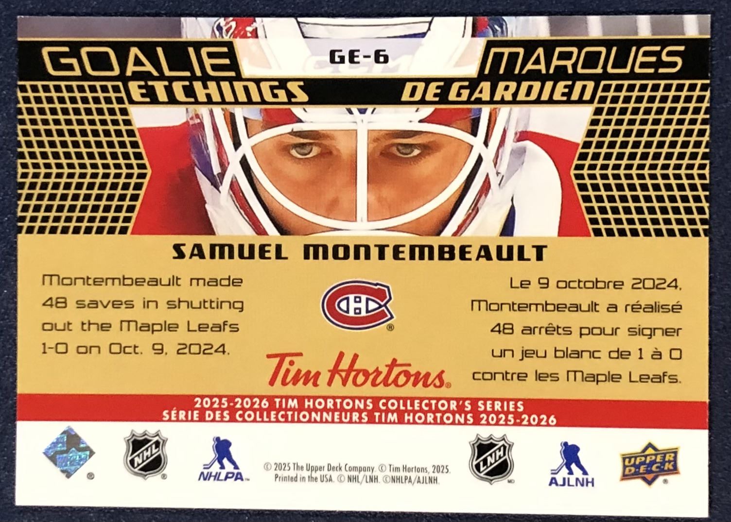 Tim Hortons card #GE-6 NHL, hockey, regional