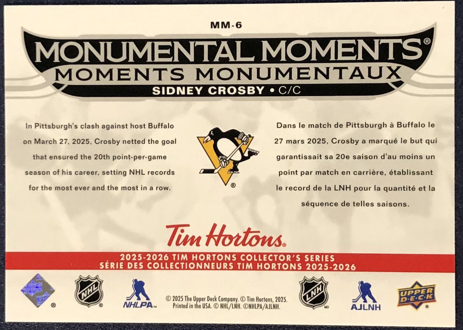 Tim Hortons card #MM-6 NHL, hockey, regional