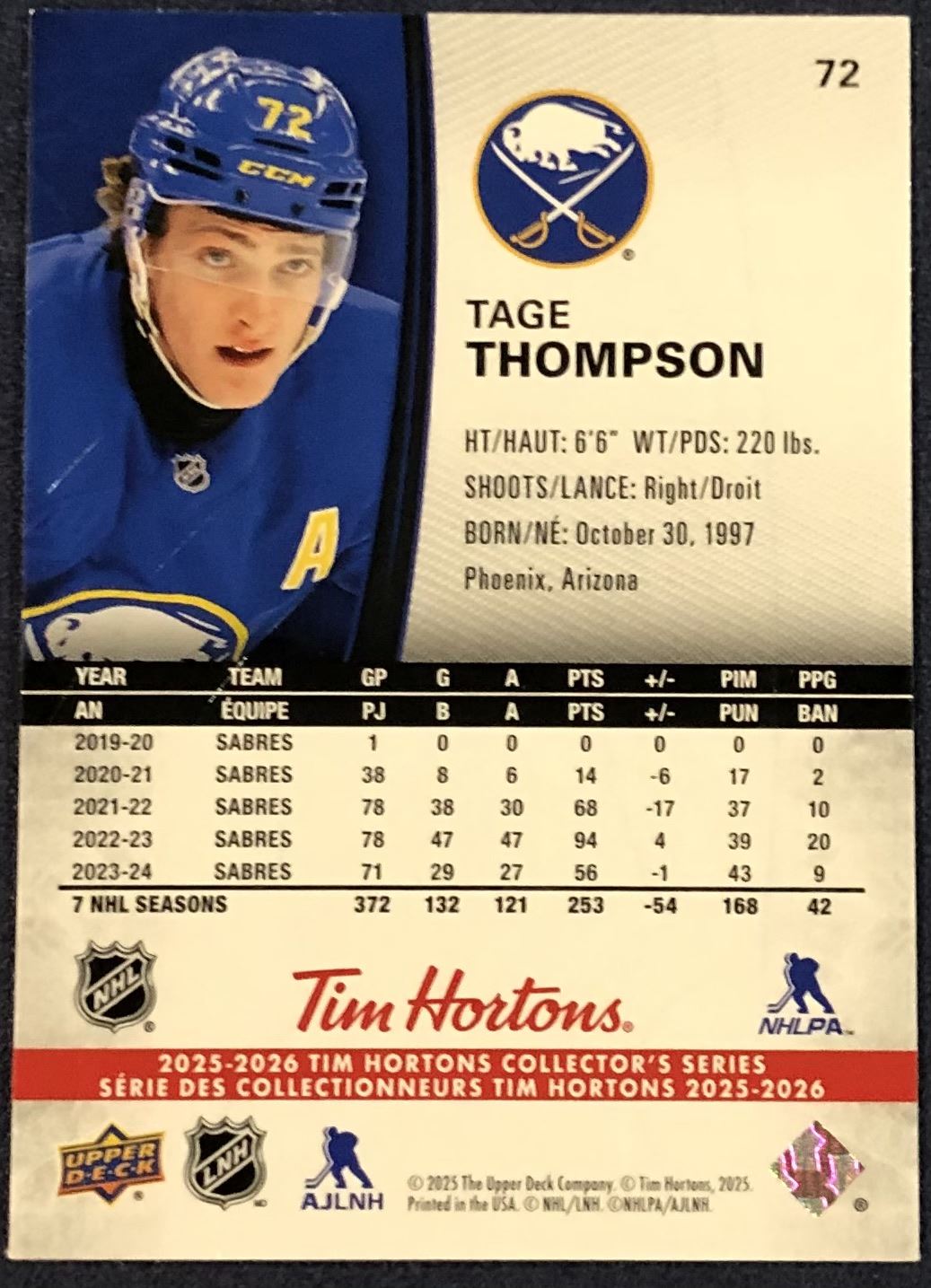 Tim Hortons card #72 NHL, hockey, regional