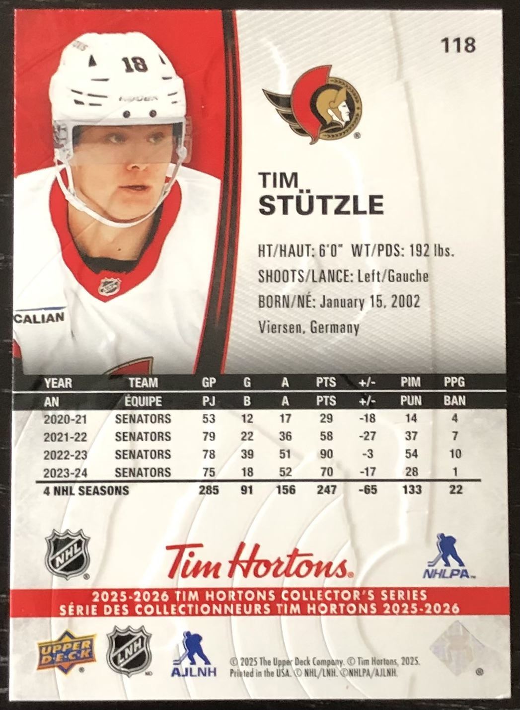Tim Hortons card #118 NHL, hockey, UD, regional