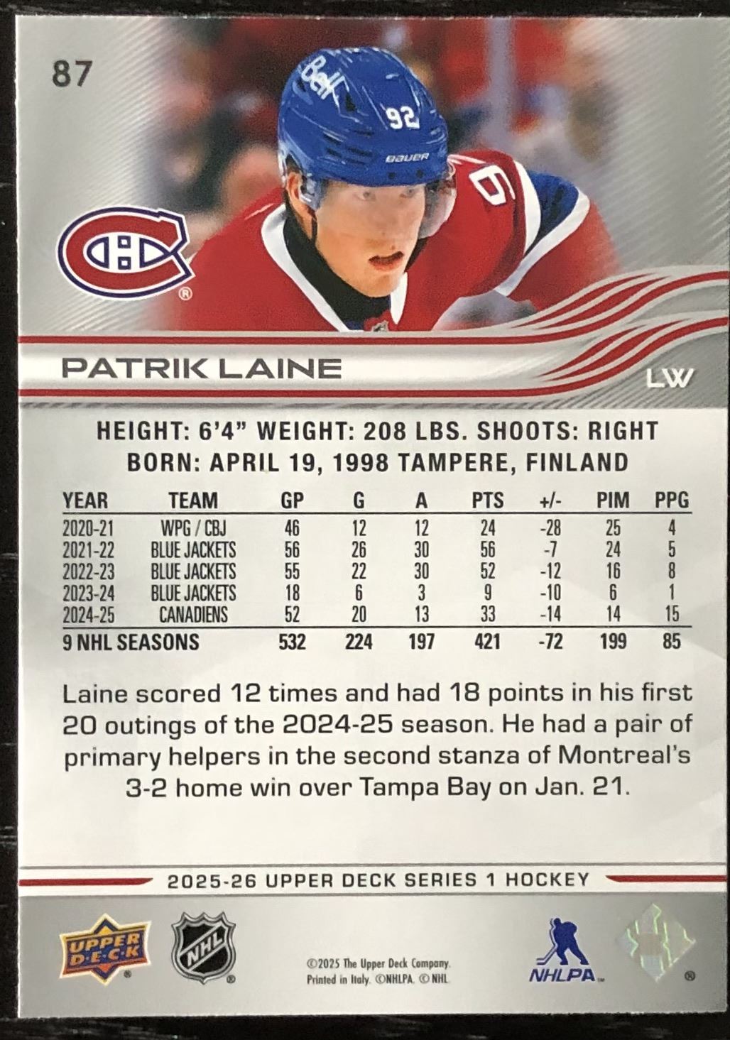 Card #87 NHL, hockey, UD