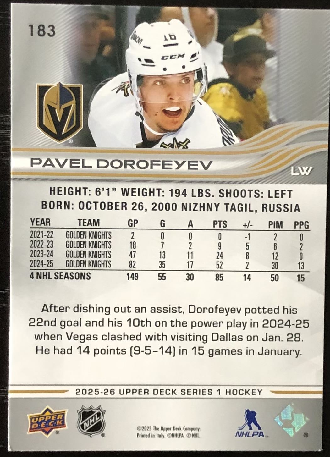 Card #183 NHL, hockey, UD