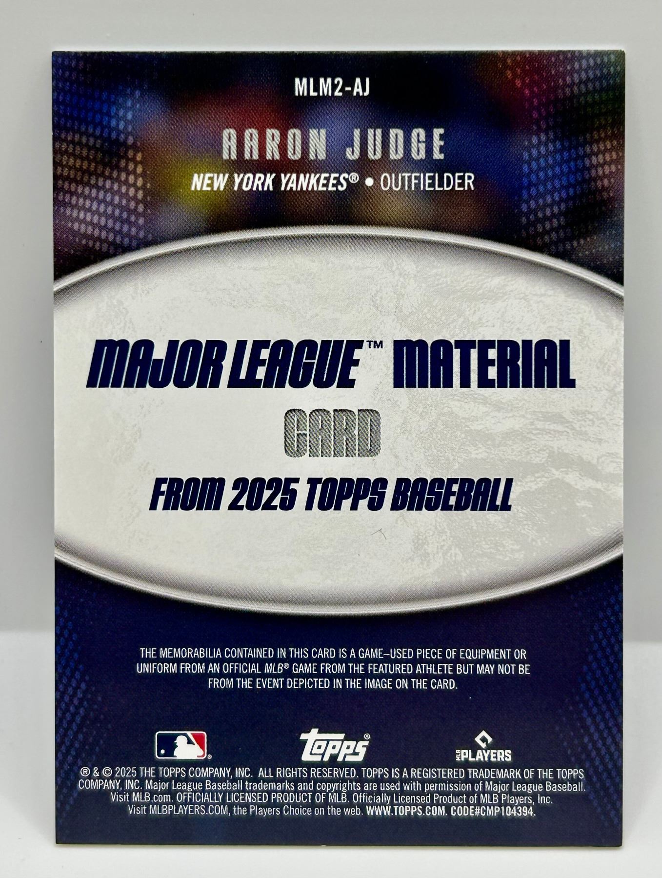 2025 Topps Aaron Judge Game Used Patch #MLM2-AJ