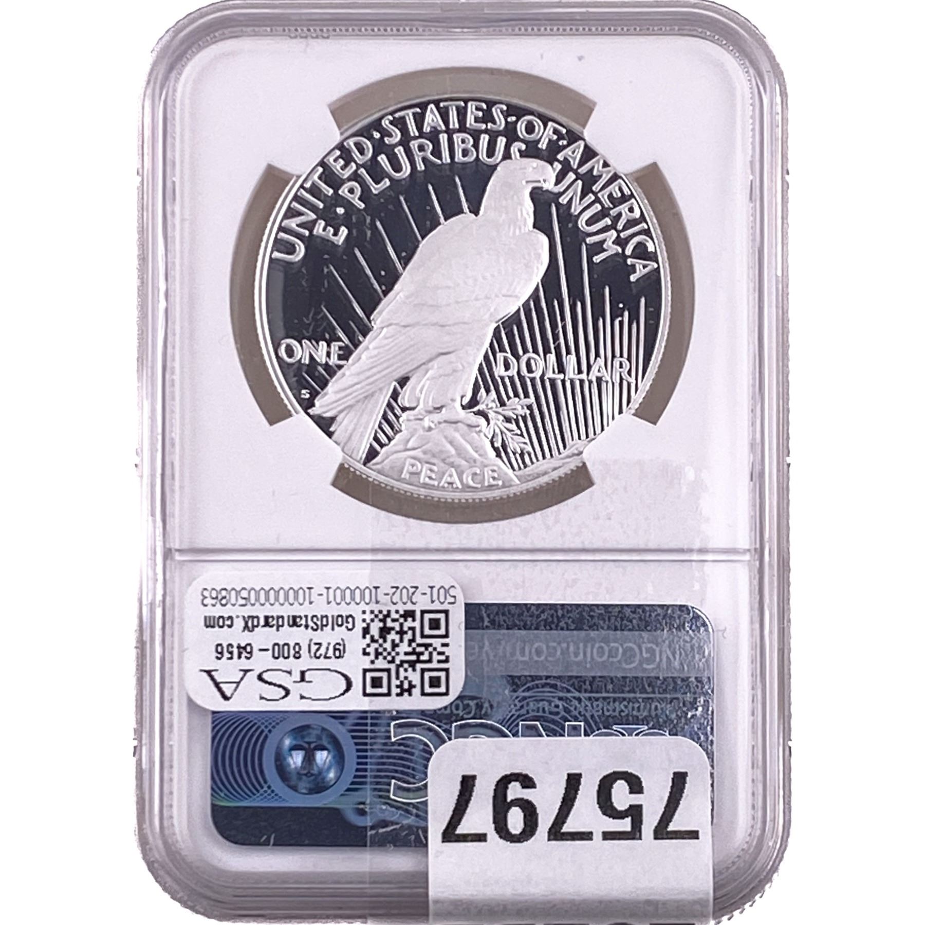 e. Coins sold referencing a third-party grading service are sold “AS IS” without any express or implied warranty, except for a guarantee by GSA that they are genuine. Removal or alteration of the holder, voids all of Bidder’s claims concerning that Product. Certain warranties may be available from the grading services and Bidders are referred to them for further details: Numismatic Guaranty Corporation (NGC), PO Box 4776, Sarasota, FL 34230, www.ngccoin.com/services/writtenguarantee.asp; Professional Coin Grading Services (PCGS), PO Box 9458, Newport Beach, CA 92658, www.pcgs.com/guarantee.html; ANACS, 6555 S. Kenton St., Ste. 303, Englewood, CO 80111; and Independent Coin Grading Co. (ICG), 7901 East Bellview, Ave., Suite 50, Englewood, CO 80111.