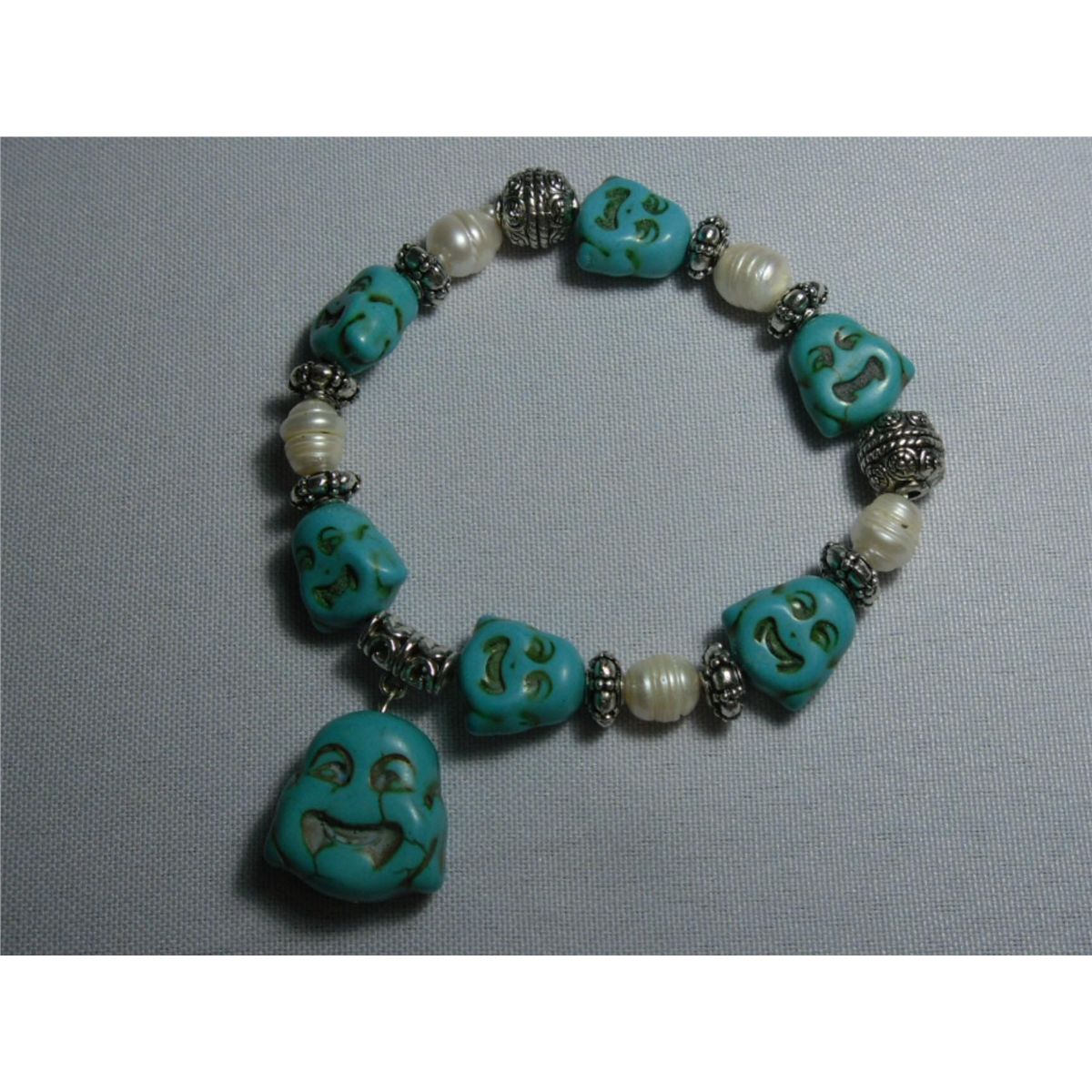202CTW NATURAL BLUE TURQUOISE BUDDHA AND PHILIPPINE WHI **|**|** 202CTW NATURAL BLUE TURQUOISE BUDDHA AND PHILIPPINE WHITE PEARL BRACELET 8INCH ; MSRP: $0