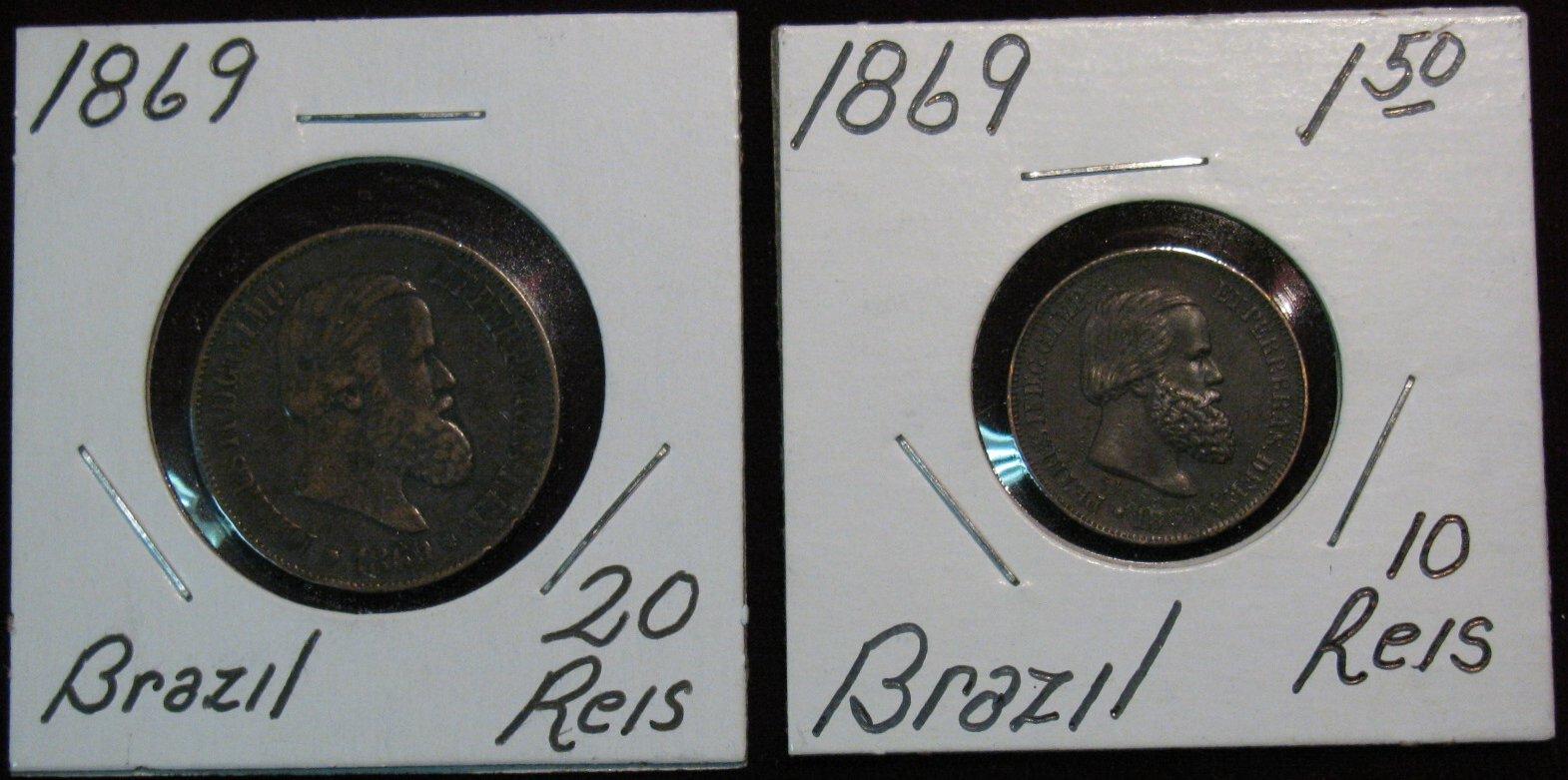 203. Brazil 1869 10-Reis & 1869 20-Reis.VF-EF.