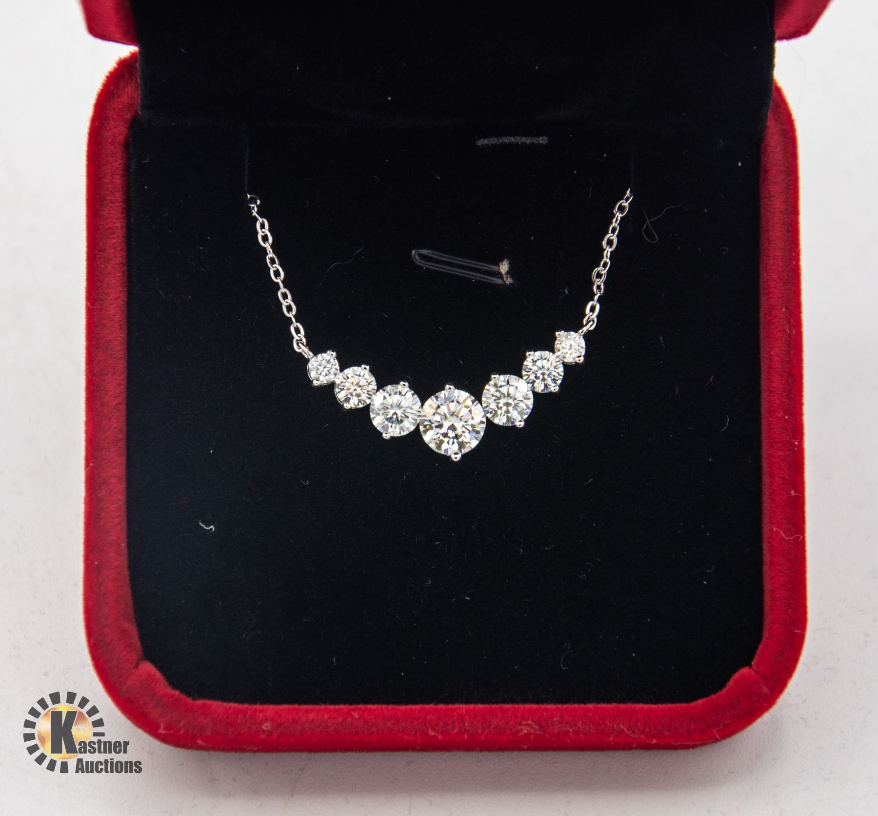 ROUND BRILLIANT CUT MOISSANITE STONES VVS D COLOR SET WITH 7 GRADUATING STONES FROM CENTER GOING EACH WAY SET IN 925 SILVER PENDANT RETAIL VALUE $975.00