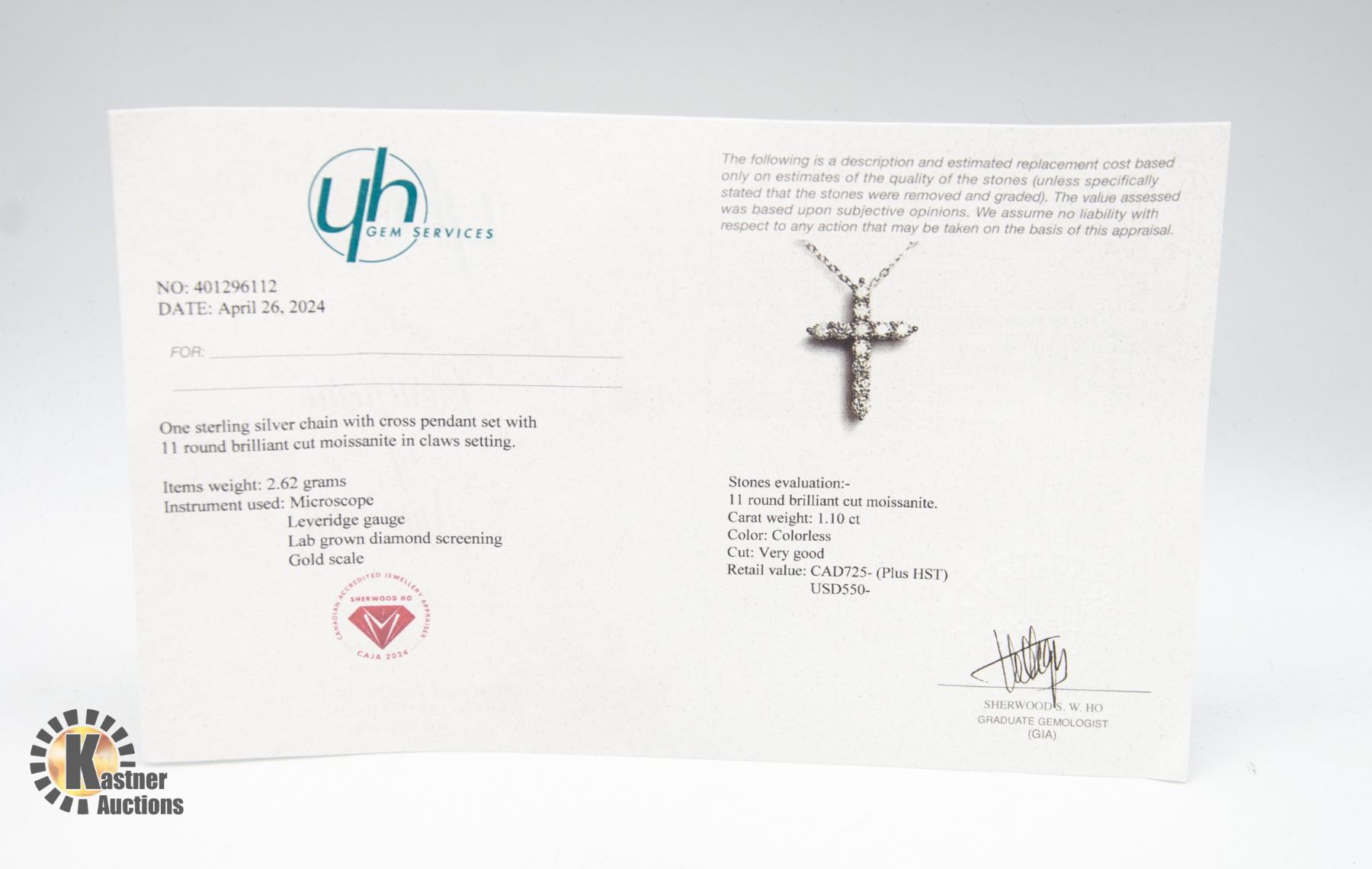 ROUND BRILLIANT CUT MOISSANITE STONES VVS D COLOR WITH THE 11 MOISSANITE STONES SET IN CROSS SHAPE SET IN 925 SILVER PENDANT RETAIL VALUE $725.00