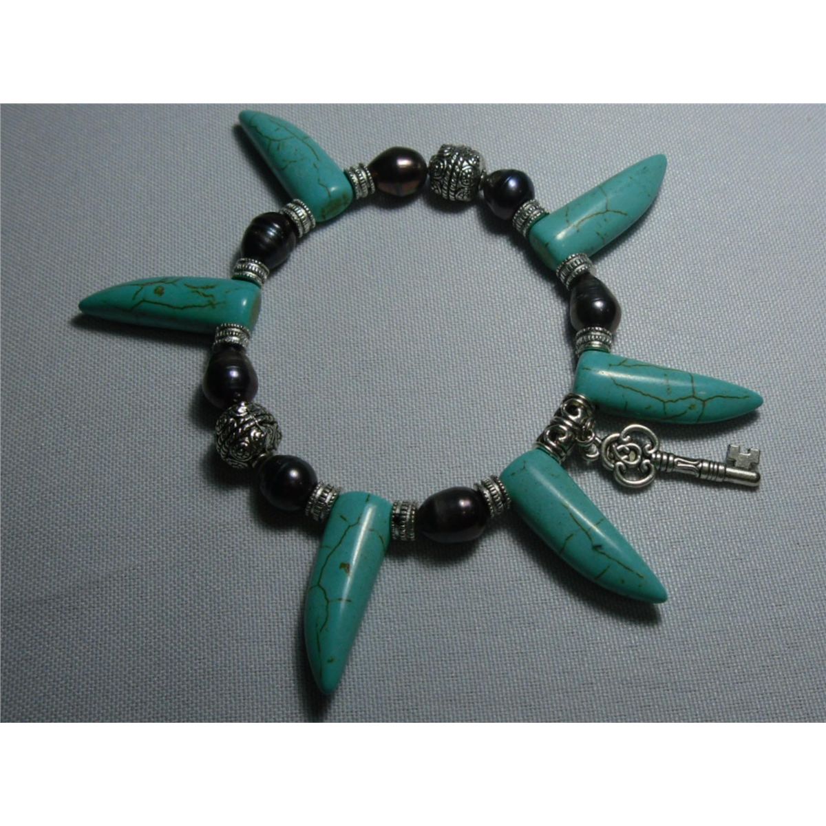 203CTW TRIBAL BLUE TURQUOISE AND PHILIPPINE BLACK PEARL **|**|** 203CTW TRIBAL BLUE TURQUOISE AND PHILIPPINE BLACK PEARL BRACELET 8INCH ; MSRP: $0