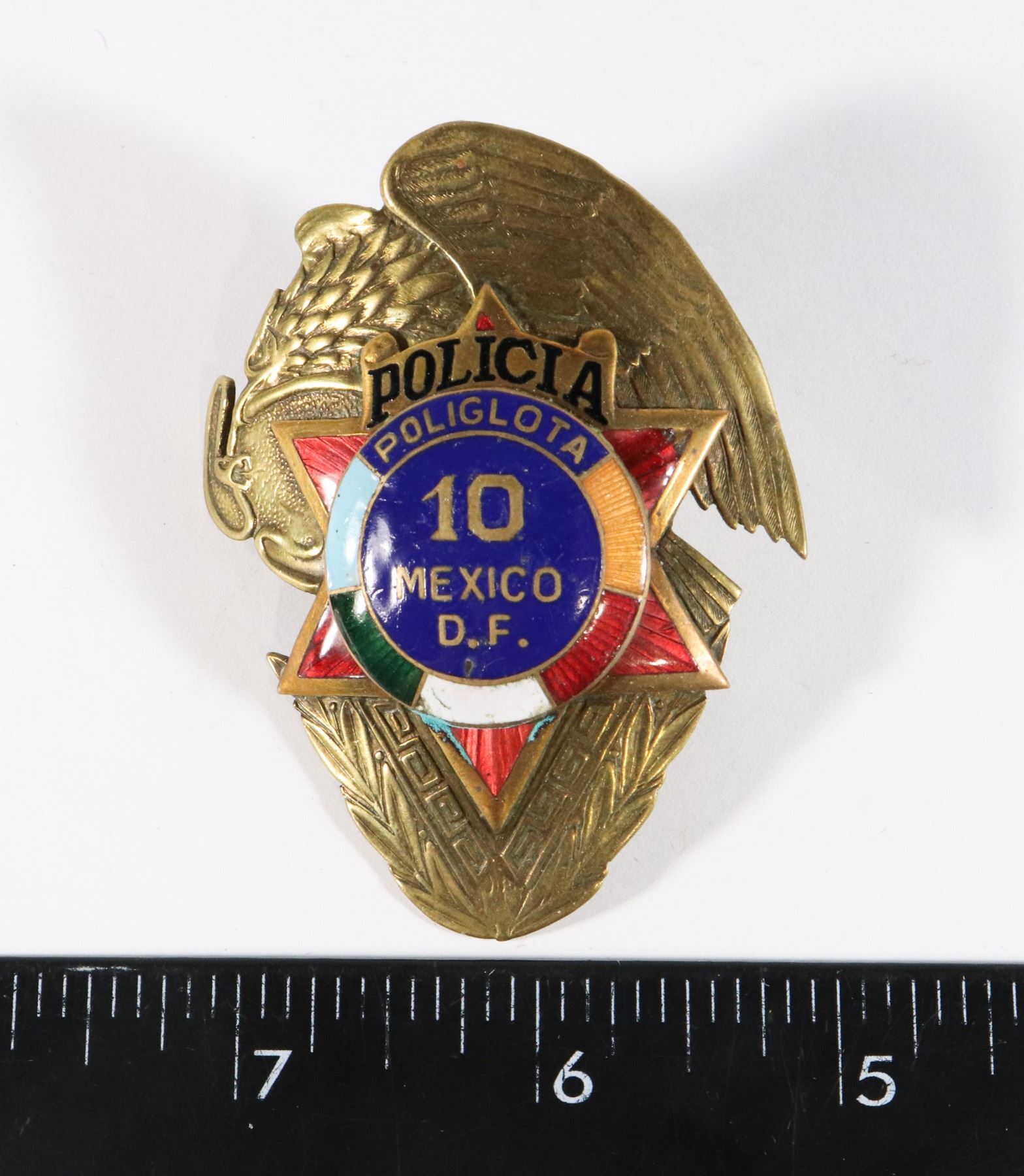 REPAIRED REVERSE FASTENER VINTAGE POLICE LAW ENFORCEMENT CAP BADGE INSIGNIA MEXICAN