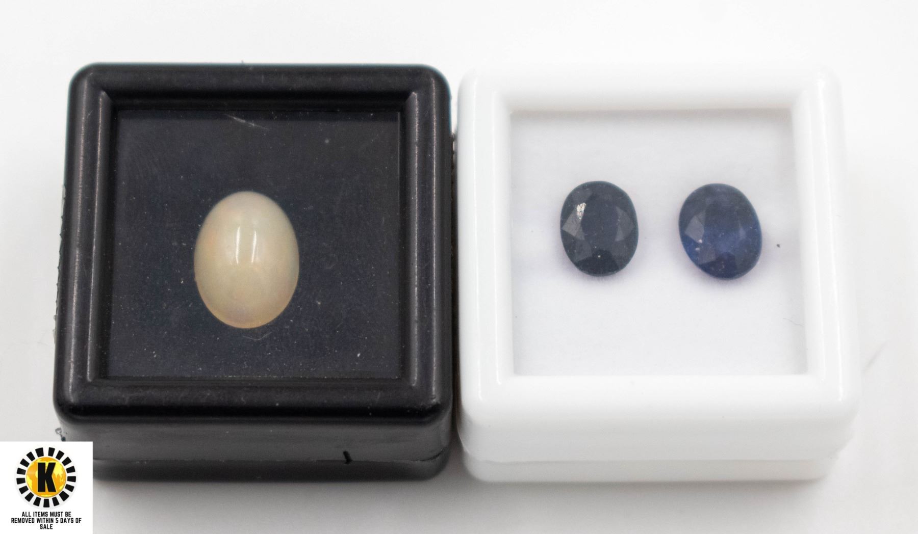 UNHEATED EITHOPIA OPAL 8 X 11.4 MM / HEATED SAPPHIRE 6 X 7.8 MM