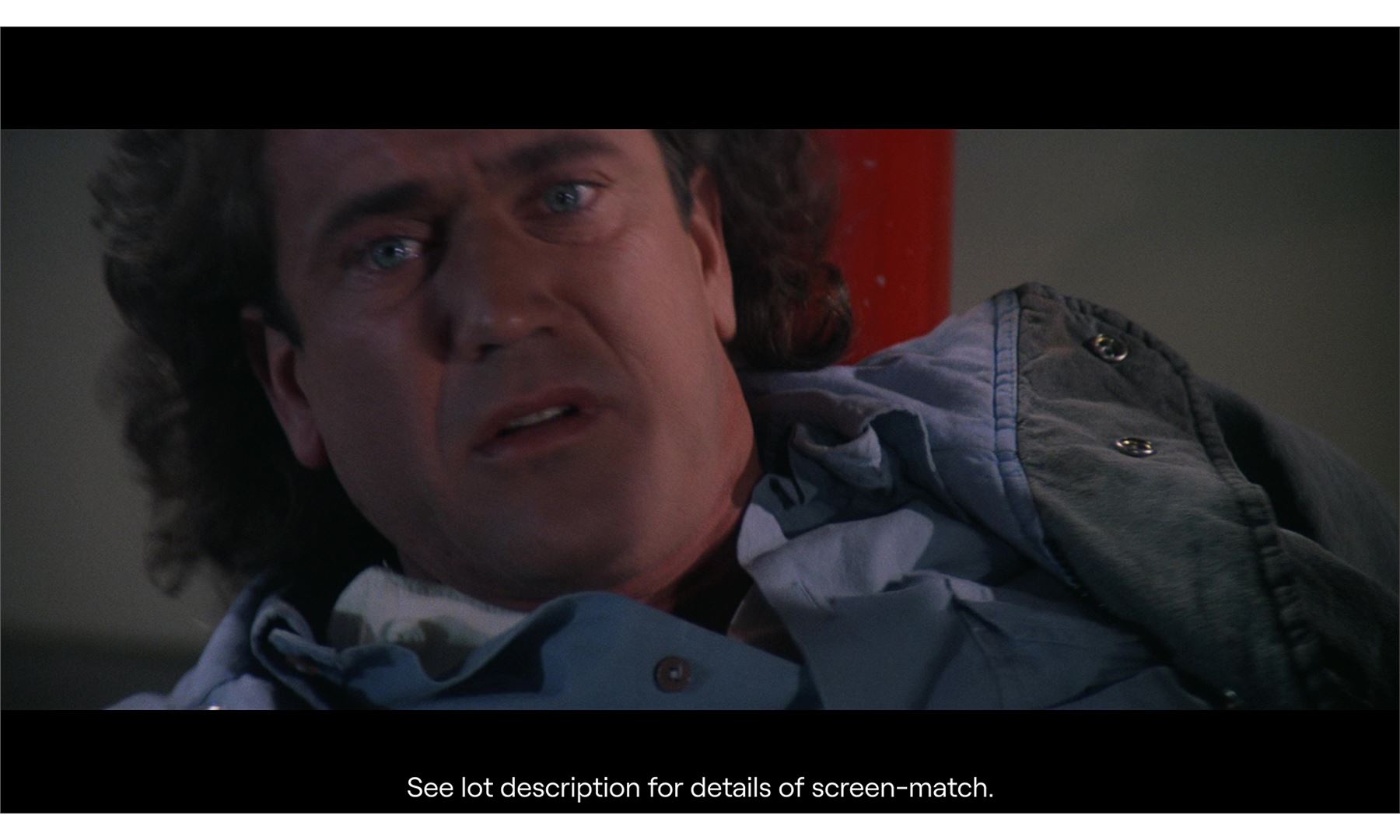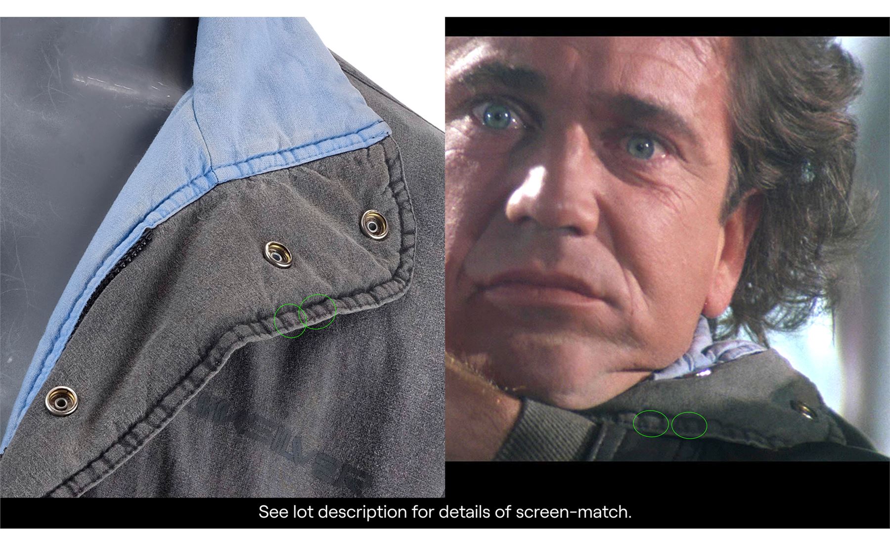 LETHAL WEAPON 3 (1992) - Martin Riggs' (Mel Gibson) Screen-Matched Jacket - Martin Riggs' (Mel Gibson) screen-matched jacket from Richard Donner's Lethal Weapon 3. Creasing on the left lapel screen-matches this jacket to when Riggs was caught and roughed up by Jack Travis' (Stuart Wilson) goons.