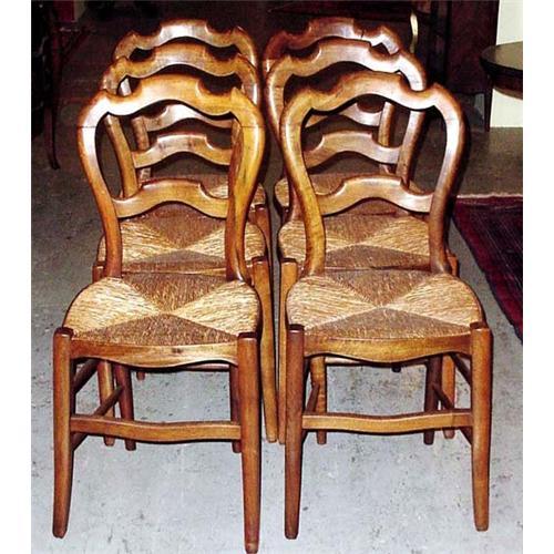 A wonderful Set Of Walnut 19th Century French Side Chairs With Rush Seats