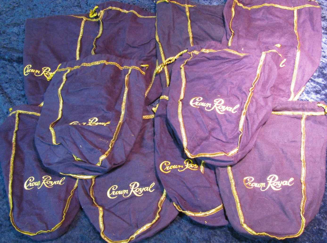 2056. (10) Crown Royal Velvet Draw String Bags. Empty.