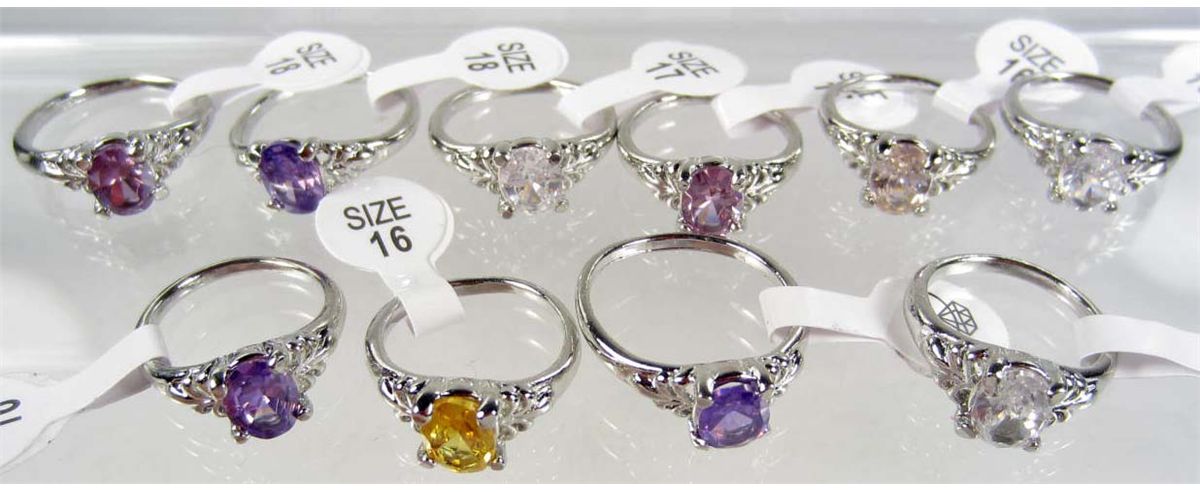 2058 - LOT OF 10 SILVER PLATE RINGS WITH GEMSTONES