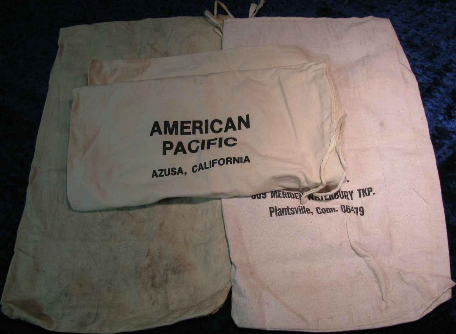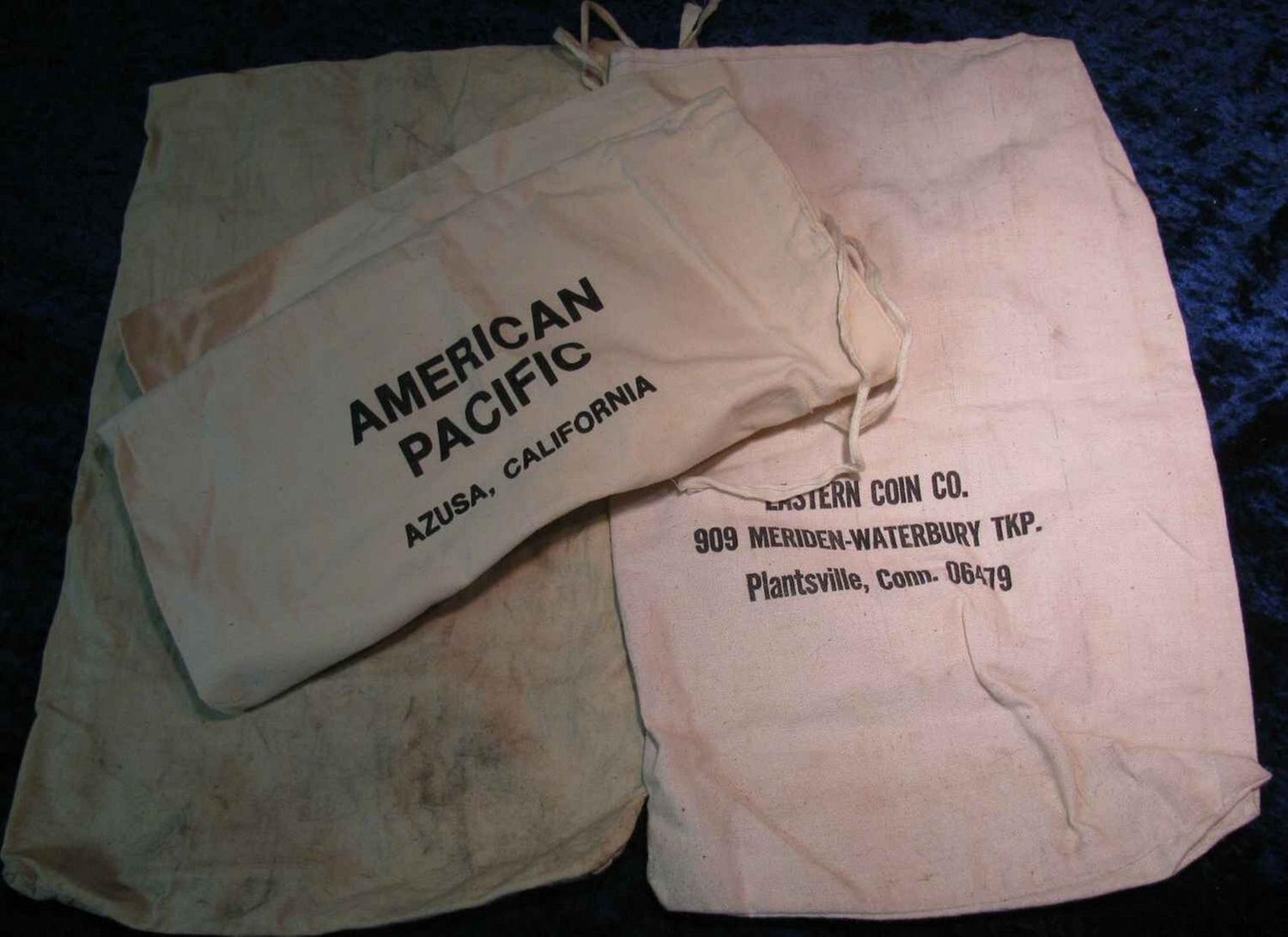 2059. Eastern Coin Co.; American Pacific; & a blank Large Canvas Money Bags.