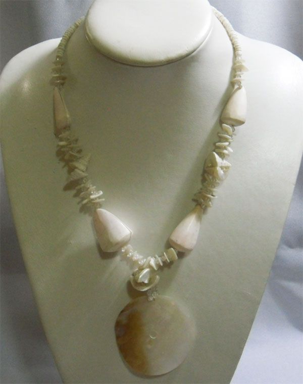 205CTW PHILIPPINE CAPIZ PENDANT SHELL-BEADED NECKLACE 1 **|**|** 205CTW PHILIPPINE CAPIZ PENDANT SHELL-BEADED NECKLACE 18INCH ; MSRP: $0
