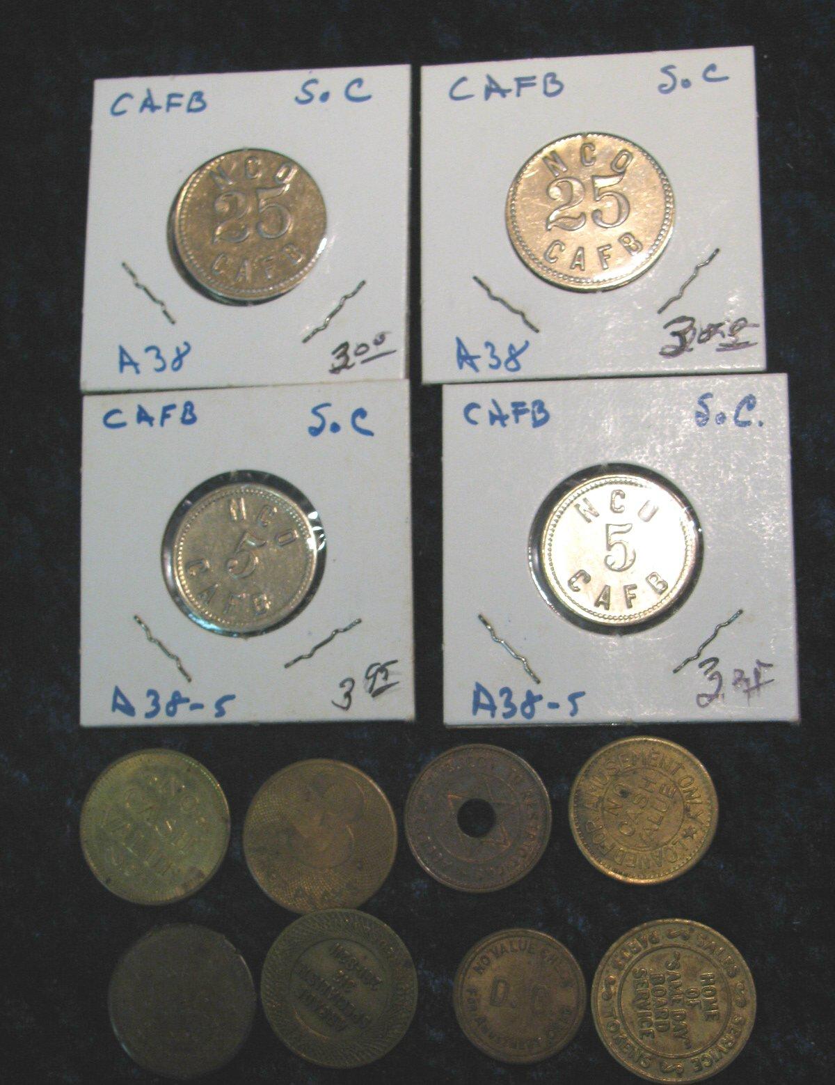 206. (8) Different Amusement Tokens & (4) South Carolina Non Commissioned Officer Tokens.