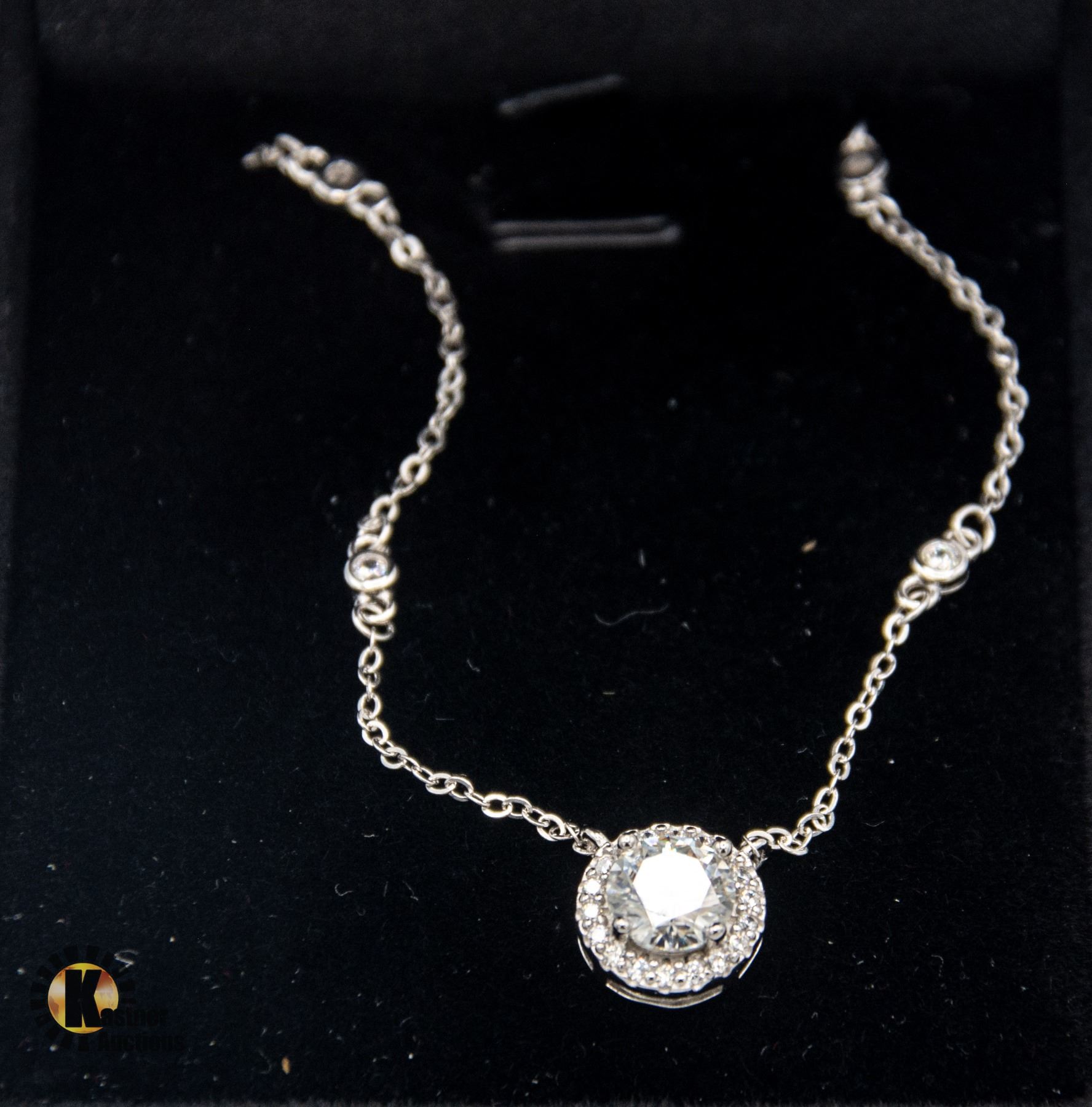 VVS D COLOR SET IN CENTER OF ROUND HALO WITH ROUND BRILLIANT CUT CUBIC ZIRCONIA WITH 4 MORE BEZEL SET IN CHAIN SET IN 925 SILVER PENDANT RETAIL VALUE $775.00
