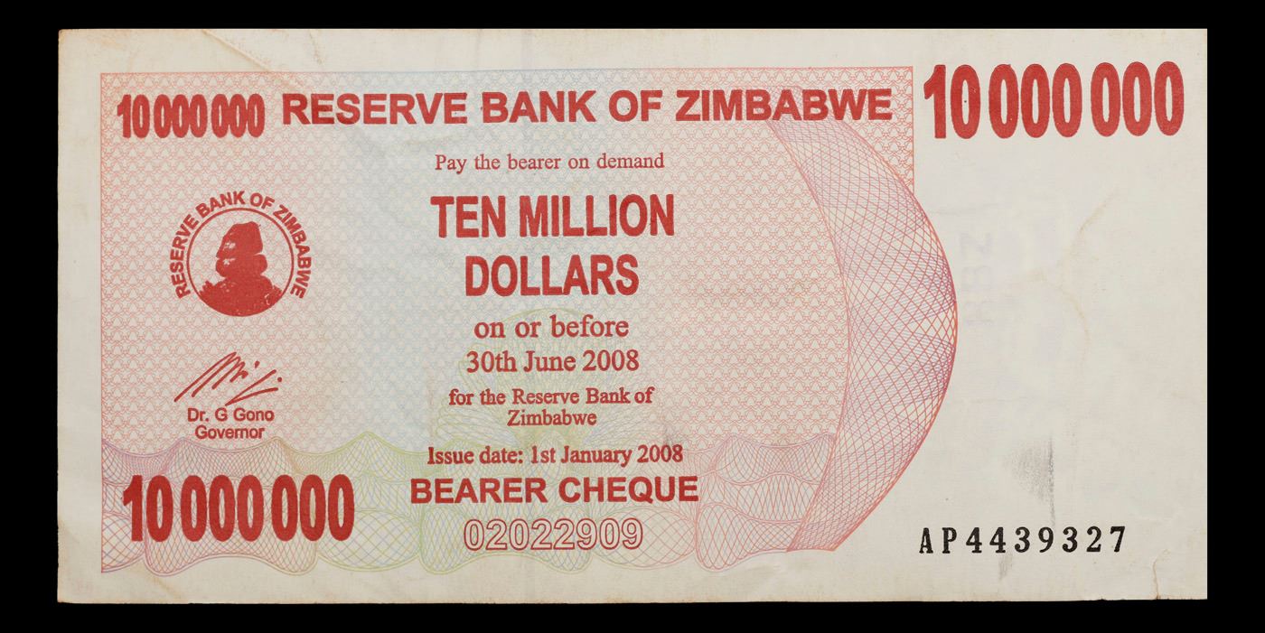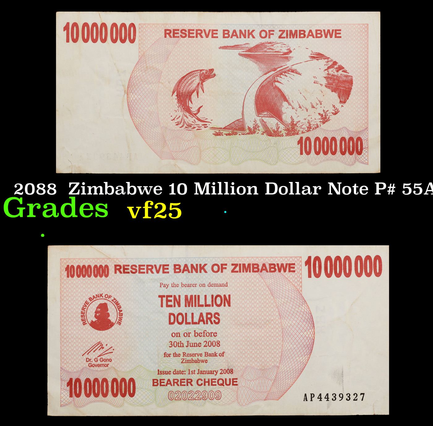 2088 Zimbabwe 10 Million Dollar Note P# 55A Grades vf+.