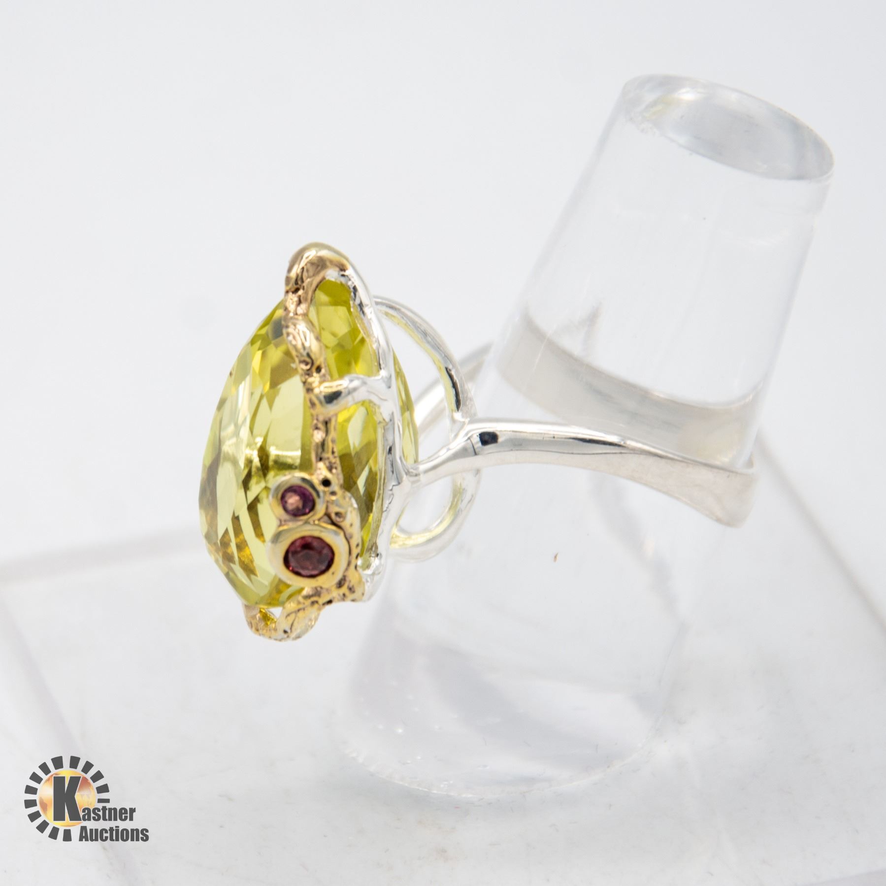 20CT+ LEMON CITRINE GEM .925 SILVER RING, SIZE 9