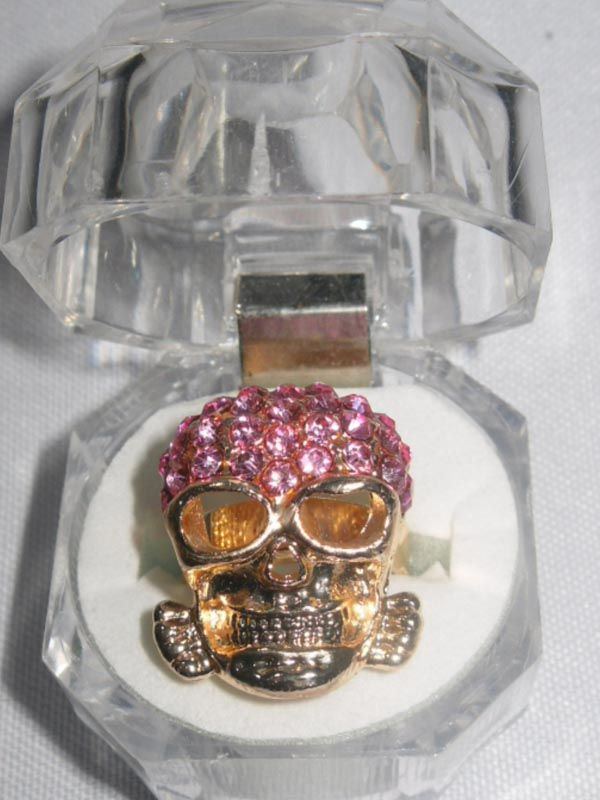 20CTW PINK SKULL ADJUSTABLE BRASS RING **|**|** 20CTW PINK SKULL ADJUSTABLE BRASS RING ; MSRP: $150